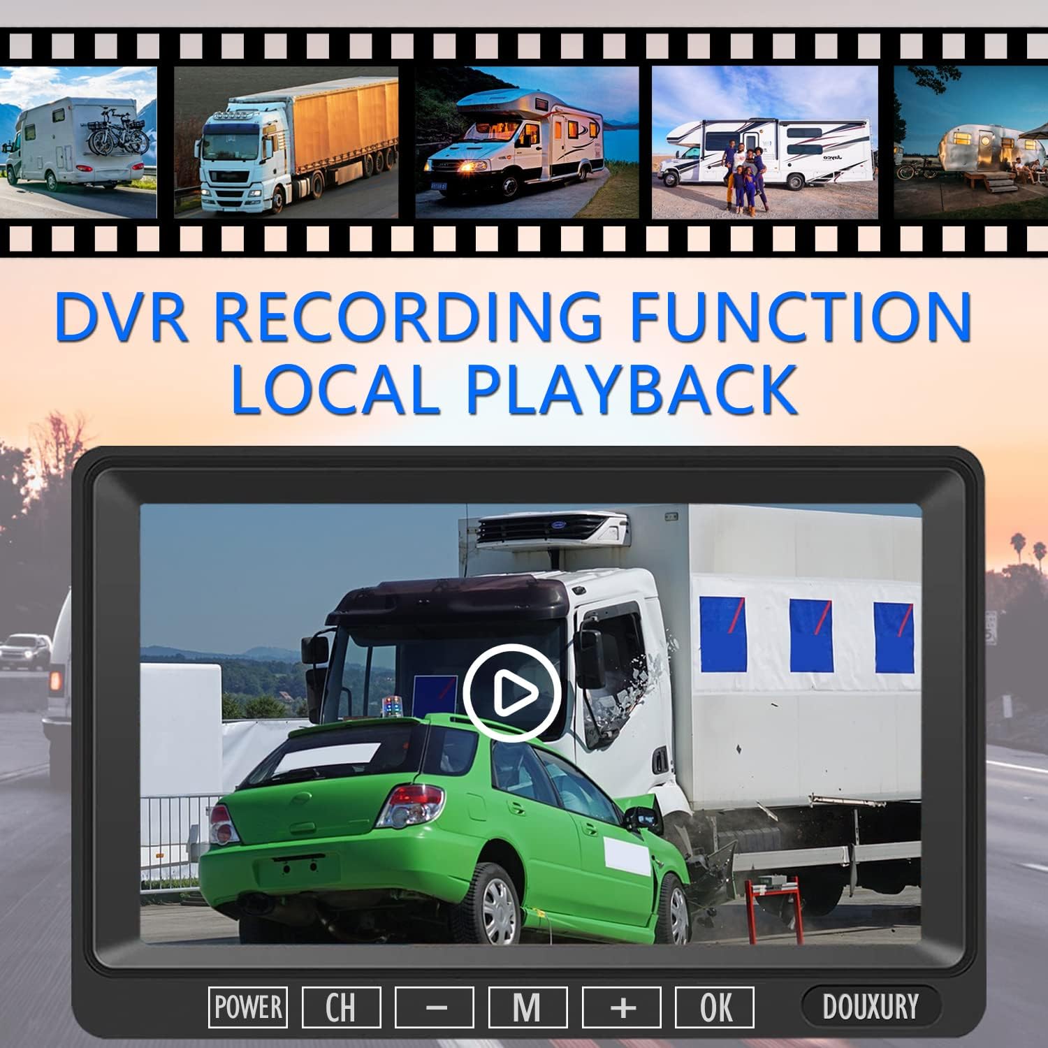 - DVR Record Function: You can avoid a lot of traffic scams/thefts. The wireless rv rear view camera has a loop recording function. Compatible with RV car truck bus trailer camper semi truck and other types of vehicles