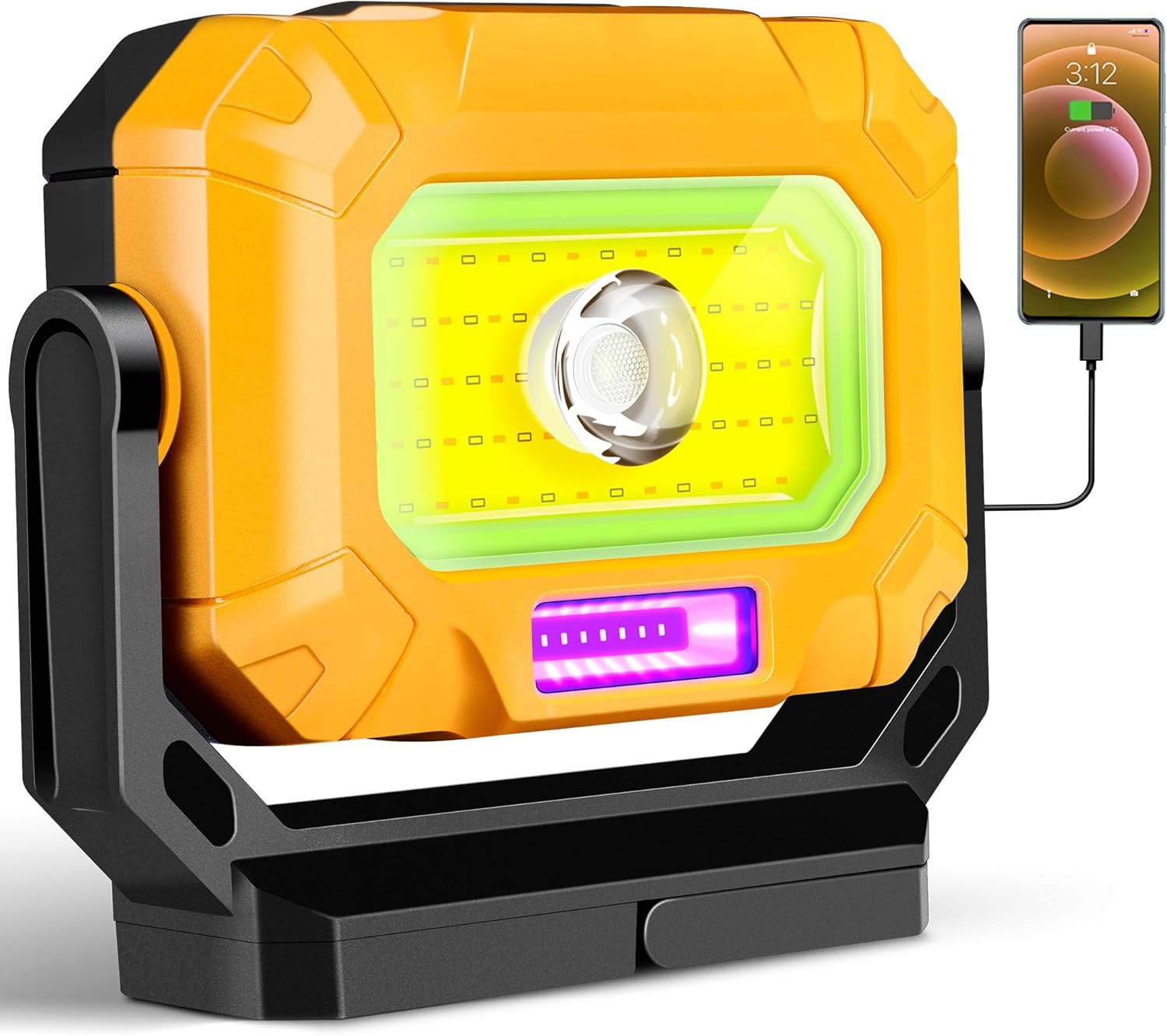 - 【4000mAh & Fast Charging Port】 - This magnetic light is equipped with a built-in 4000mAh battery that provides 4-12 hours of usage, running up to 12 hours on low brightness and 4 hours on high brightness settings. The camping magnetic light features a Type-C charging interface, allowing for quick and easy charging in just 3.5 hours. It comes with Type-c charging cables. The rechargeable work light can also charge smartphones and other small devices via the USB-A port.