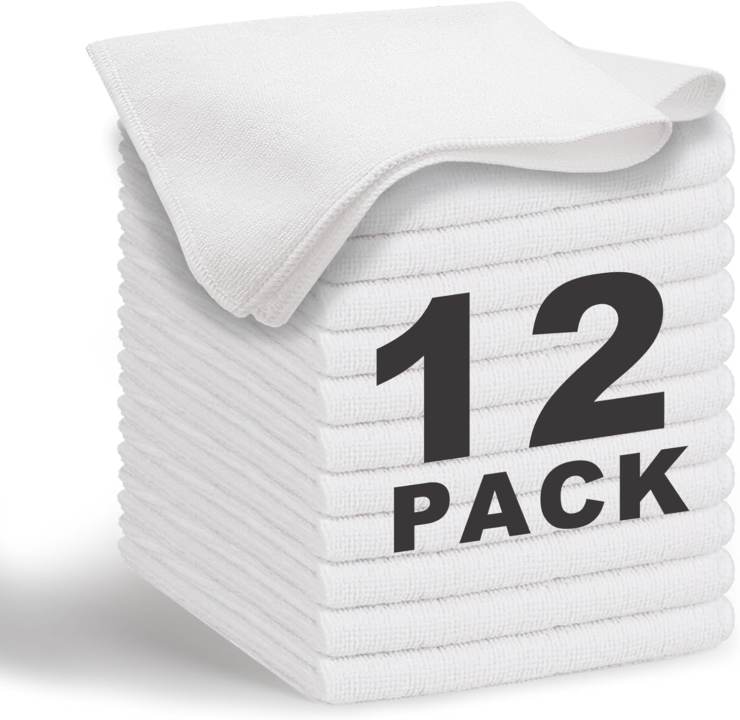 White Microfiber Cleaning Cloth 13"x13", Ultra Soft Absorbent Microfiber Cleaning Rags for Housekeeping Cleaning Supplies, Lint Free Reusable Cleaning Cloths for House Washable, Pack of 12