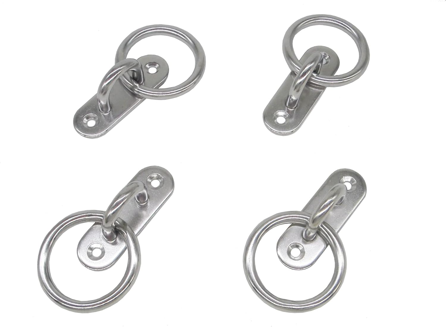 Stainless Steel Ceiling Hooks & Wall Hangers with Rings - Heavy Duty M6 Screw Mount, Rust-Proof Anchor Straps for Garage, Outdoor, Storage (4-Pack)