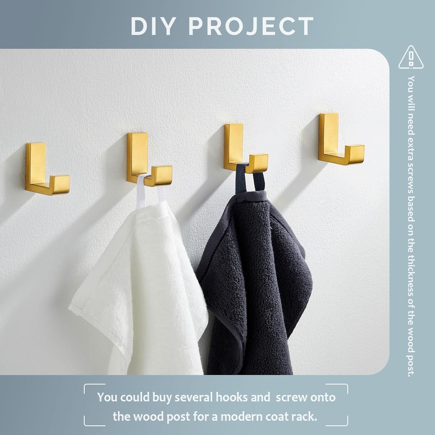 Angle Simple Towel Hook Brushed Gold 2 Pack, 304 Stainless Steel Robe Hook for Bathroom