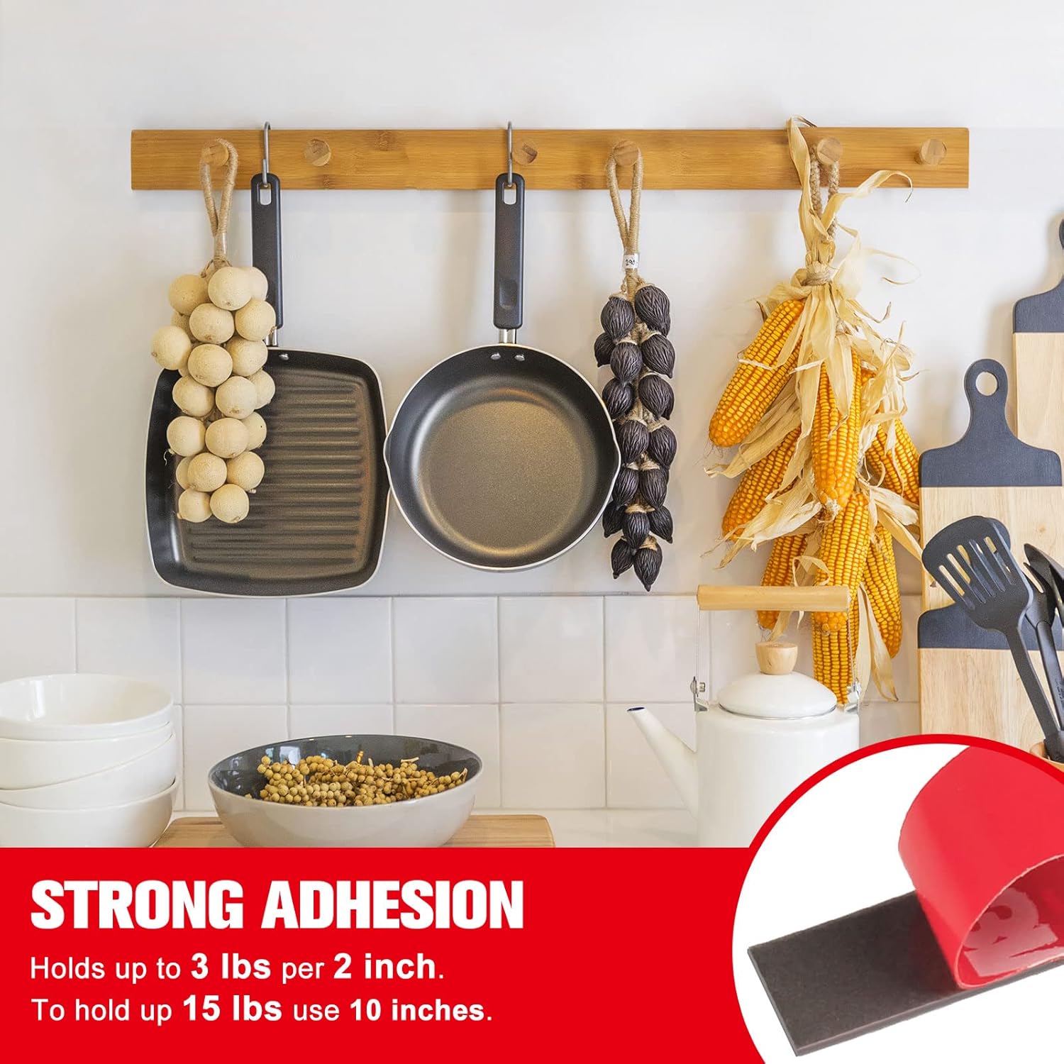 - Heavy Duty Tapes: You will get 2 strong double sided mounting tapes. 33 feet in length, 0.4 inch width, 0.025 inch thickness per roll. Strength: holds up to 3 Ibs per 2 inches. It is ideal for mounting large and heavy tools, greenhouse tarps, teaching materials, posters and picture frames