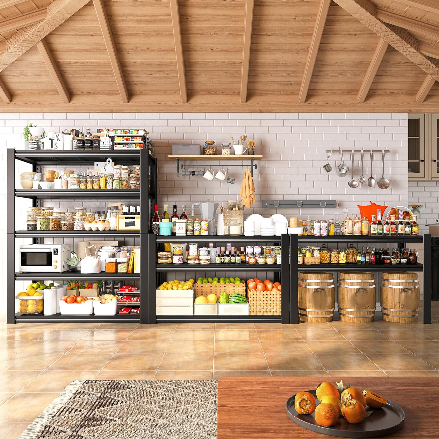 - 【2500Lbs Capacity & Extra Large Size Garage Shelving】 40"W x 18"D x 72"H Monster Size with 2500 lbs garage storage shelves heavy duty has double-layer thickened legs, which was made of high-quality metal. Unlike fragile wooden boards, our metal shelving is thickened and solid with 4 strong ribs under each steel board with a capacity of 500lbs, a total of 2500 lbs bearing capacity brings strong and sturdy storage experience for you