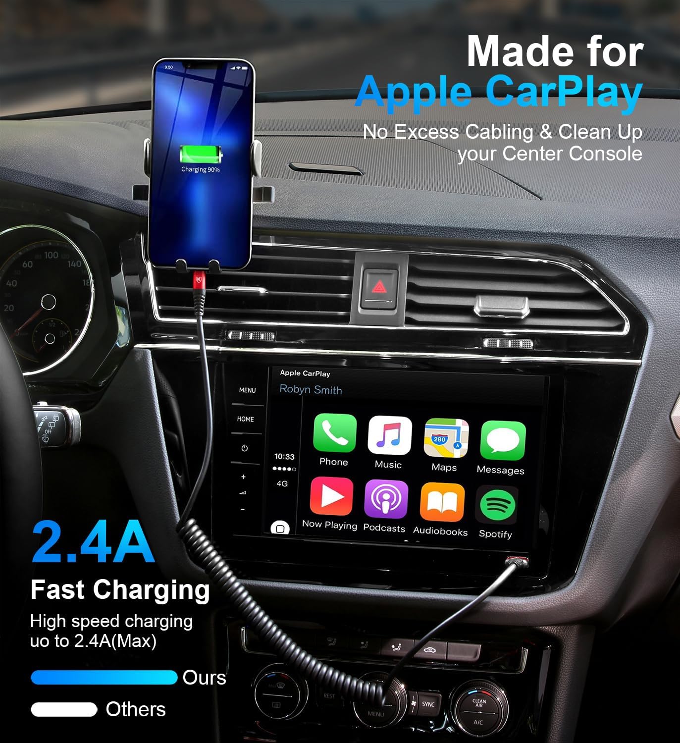 - iPhone Charging Cable for Car : Retractable iPhone car charger with spring shape design, portable and not tangled. It can well save the use of space in the car and say goodbye to the hassle of data cable clutter and tangles.