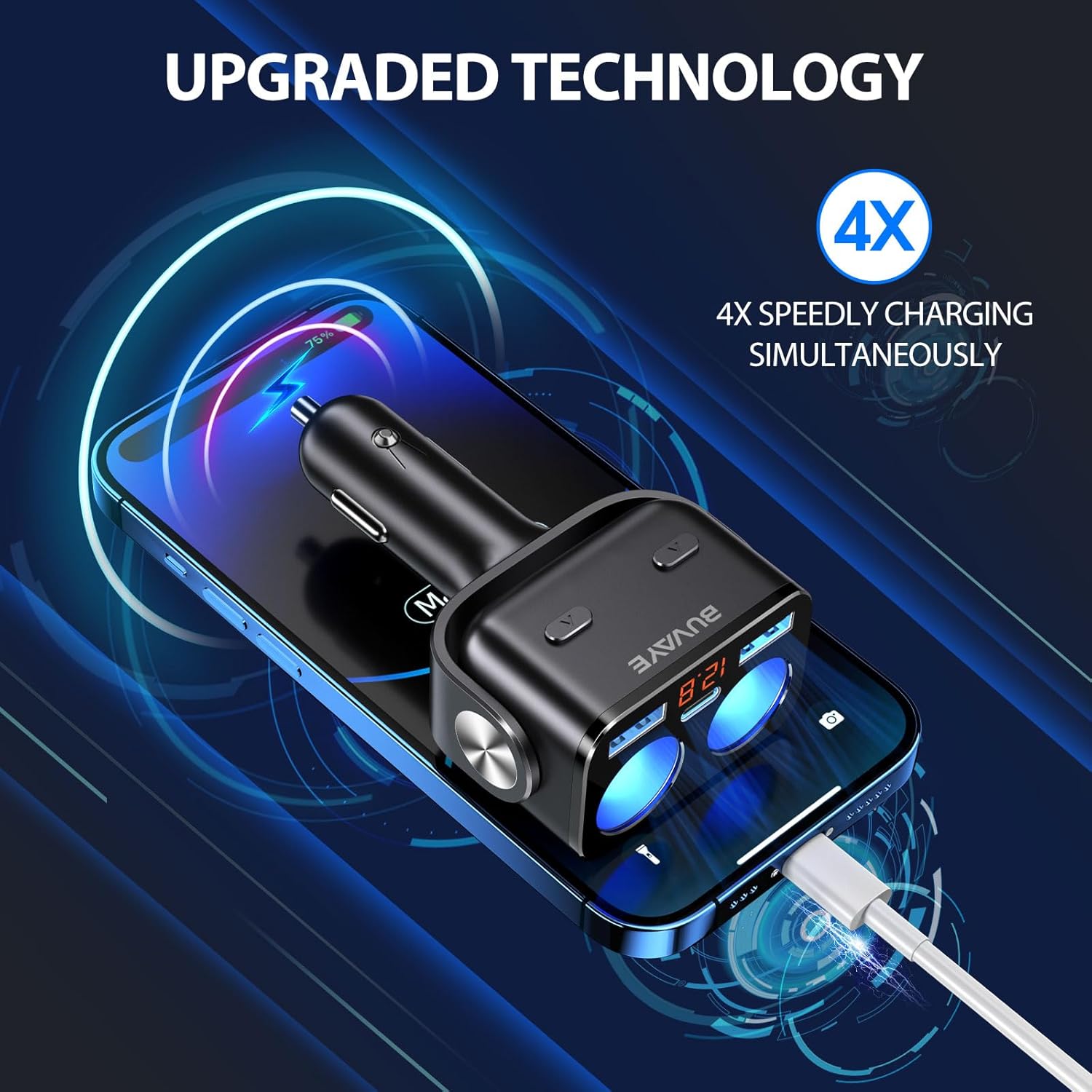 Car Cigarette Lighter Splitter, BUVAYE 12V/24V Dual Cigarette Lighter Adapters for Cars 2-Socket Car Charger Adapter for iPhone/iPad/GPS/Dash Cam/Laptop