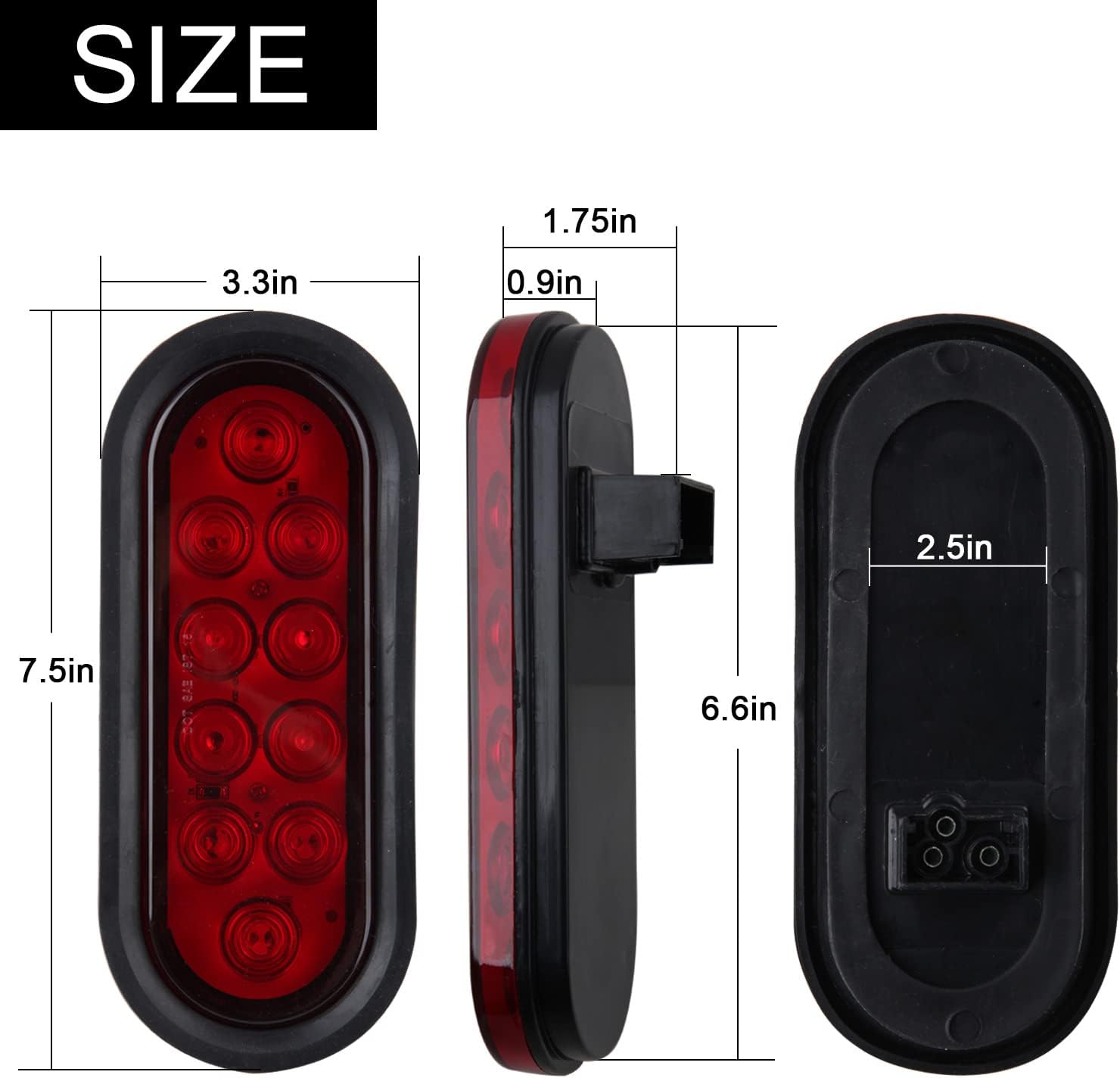 - This listing features for 10 Pieces 6" oval led tail lights in RED LENS. Black Rubber Grommet and 3 Prong Wire plugs are Included for complete installation;