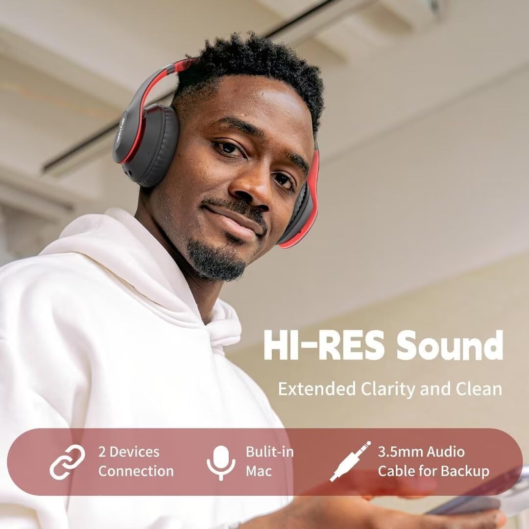 - 🔥【Excellent Sound & 6EQ MODES】Wireless Bluetooth headphones equipped with 40mm dynamic driver, which produces hi-fi stereo sound,crisp and clean, great balanced Bassup and reduces environmental noise.Switch freely between 6 sound effects with the EQ button:Bass,pop,rock,classic,jazz and vocal.Listening to a variety of music,just like you are in a concert with a wide sense of space.