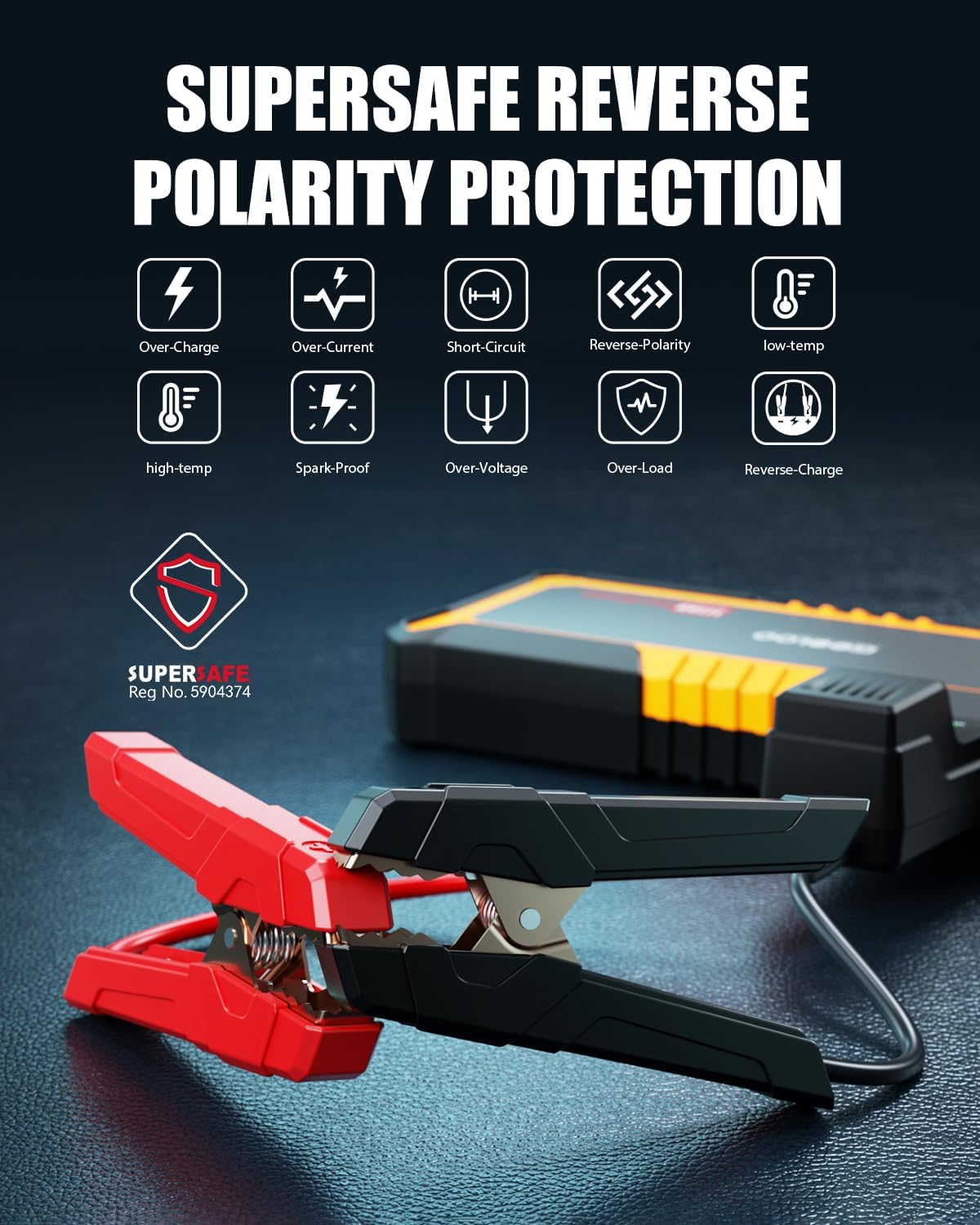 - 10 SECURITY PROTECTIONS: The GP3000 smart jumper cable is constructed with all-metal heavy-duty clamps to prevent breakage caused by long-term use. And it has 10 protections(over-charge, over-current, short-circuit, reverse-polarity, low-temp, high-temp, over-voltage, over-load, spark-proof, reverse-charge), making the GP3000 car battery charger jump starter safe for anyone to use even in extreme environments from -4°F to 140°F.