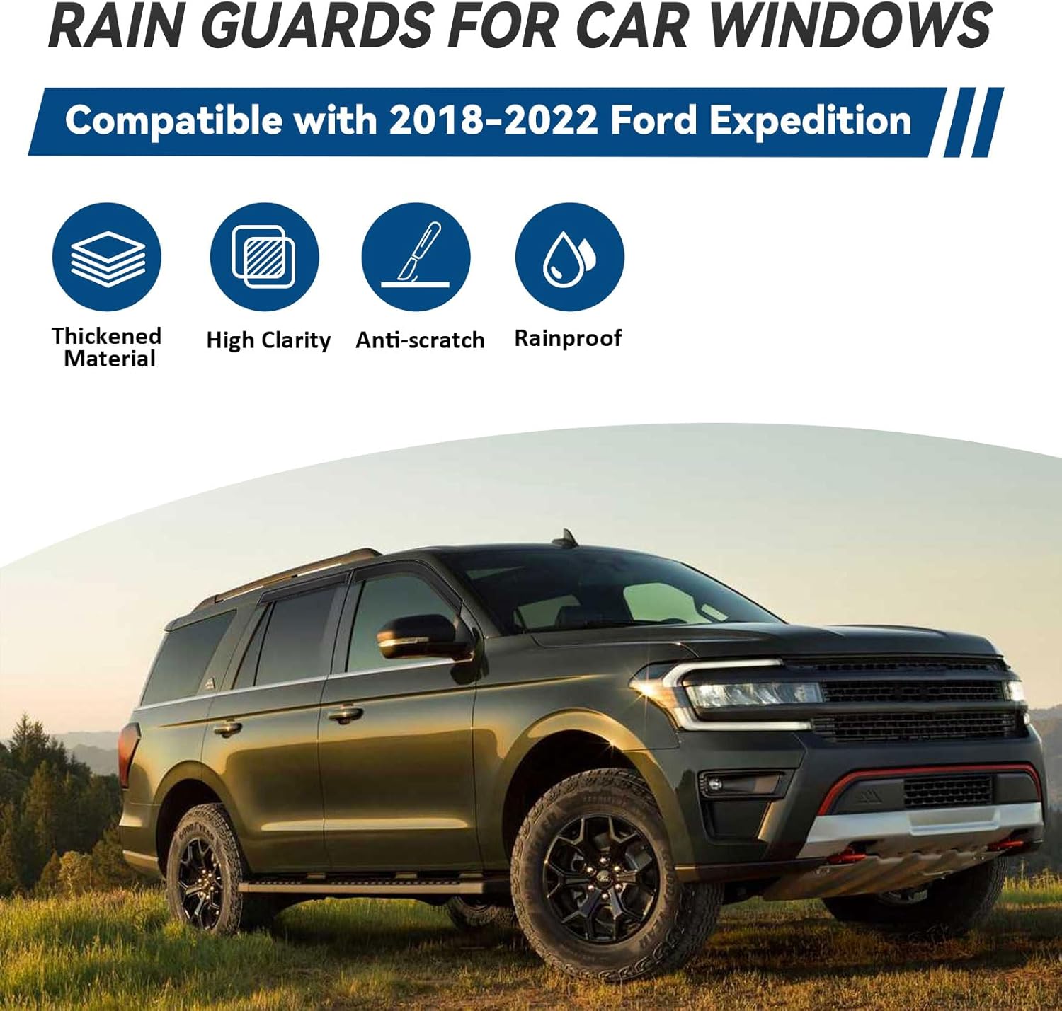 Window Visors Compatible with 2018-2022 Expedition Front+Rear Smoke Tint Sun/Rain Guard Outside Mount Tape-On Vent 4 Pcs