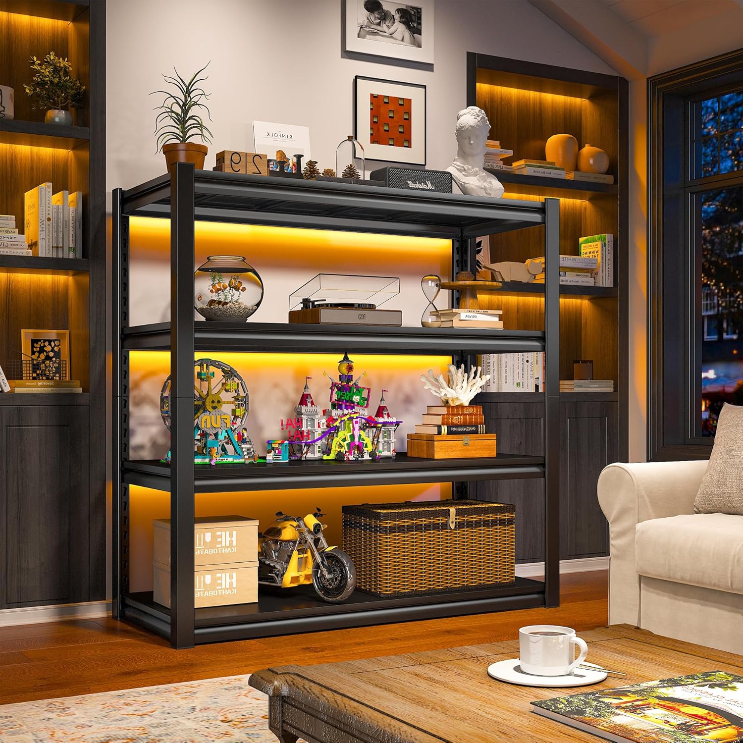 - 【Sturdy & Durable & Rust-Proof Heavy Duty Shelving】 All metal structure & 2-layers metal leg & 4 ribs for every metal shelf rack make the garage shelving for storage super stable & durable.The steel storage shelves use an anti-rust painting tech, easy to clean, moisture-proof and rust-proof. It will not wobble or shake no matter how many stuffs(even nothing) you put on. This matal shelving can serve you for many years