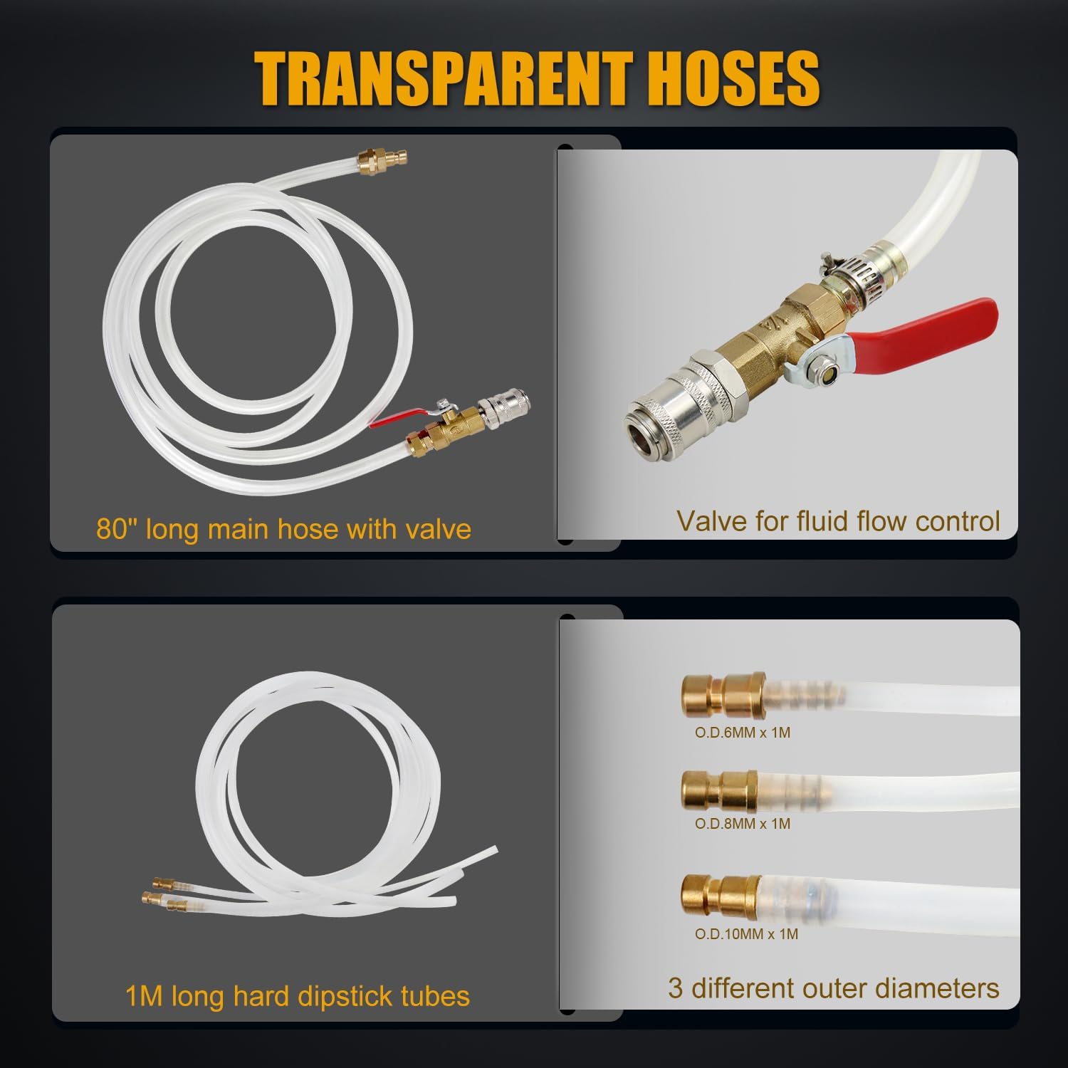 - Wide Application: Transmission fluid pump set contains 3 CS 1 M long hard dipstick tubes (O.D. 6 MM 8 MM 10 MM). They can be inserted into various pipes or tanks such as engine dipstick water tank, and used for replacing oil, differential fluid, transfer case fluid, gear oil, power steering fluid, and other non-corrosive and low concentration liquids. Greatly improve the efficiency of maintaining vehicles, jet skis, lawnmowers or other small engines, no need to crawl around under lifting vehicles