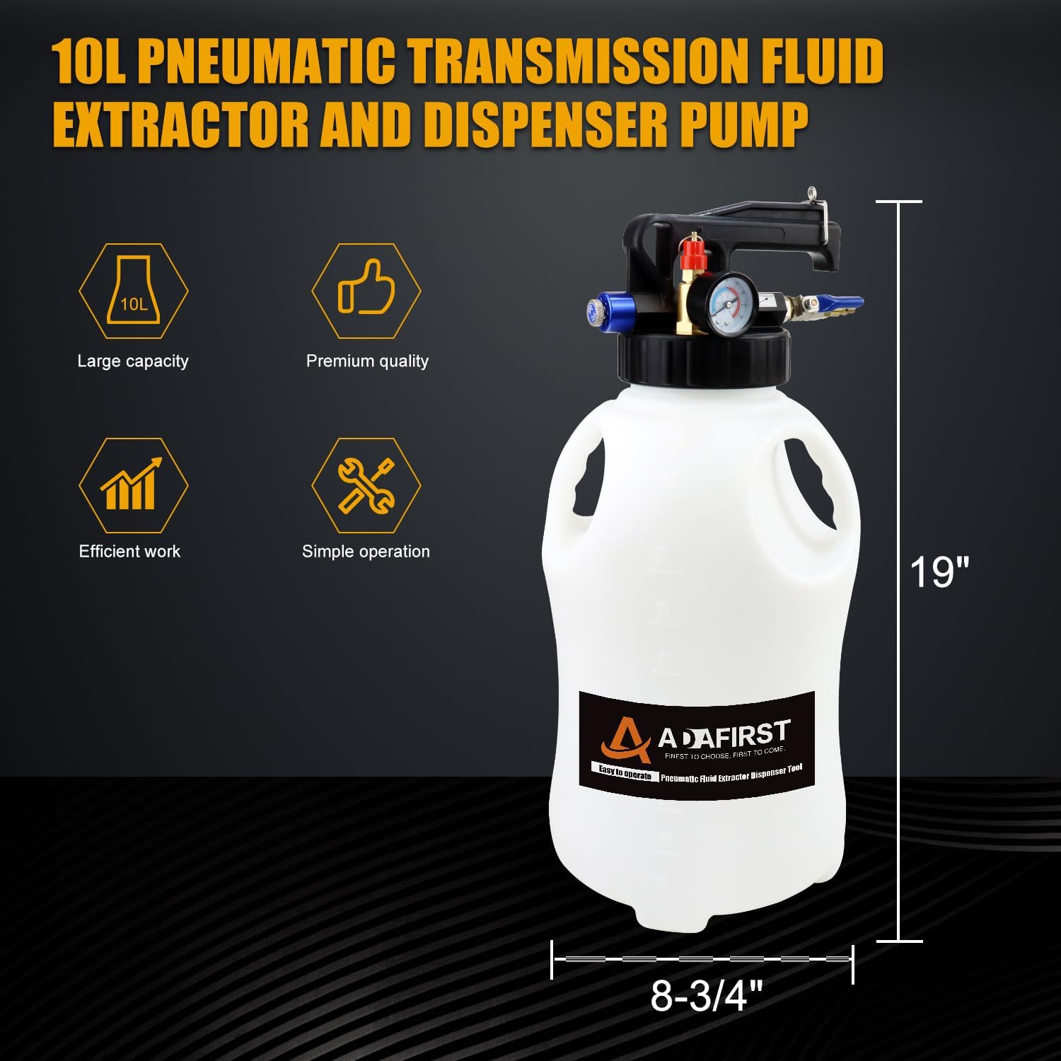 Transmission Fluid Transfer Pump Kit, 10L Pneumatic Fluid Extractor and Dispenser Tool with Adapter for ATF Fill, Gear Oil Refill, Differential Oil, Garage and Shop Fluid Evacuator and Filler