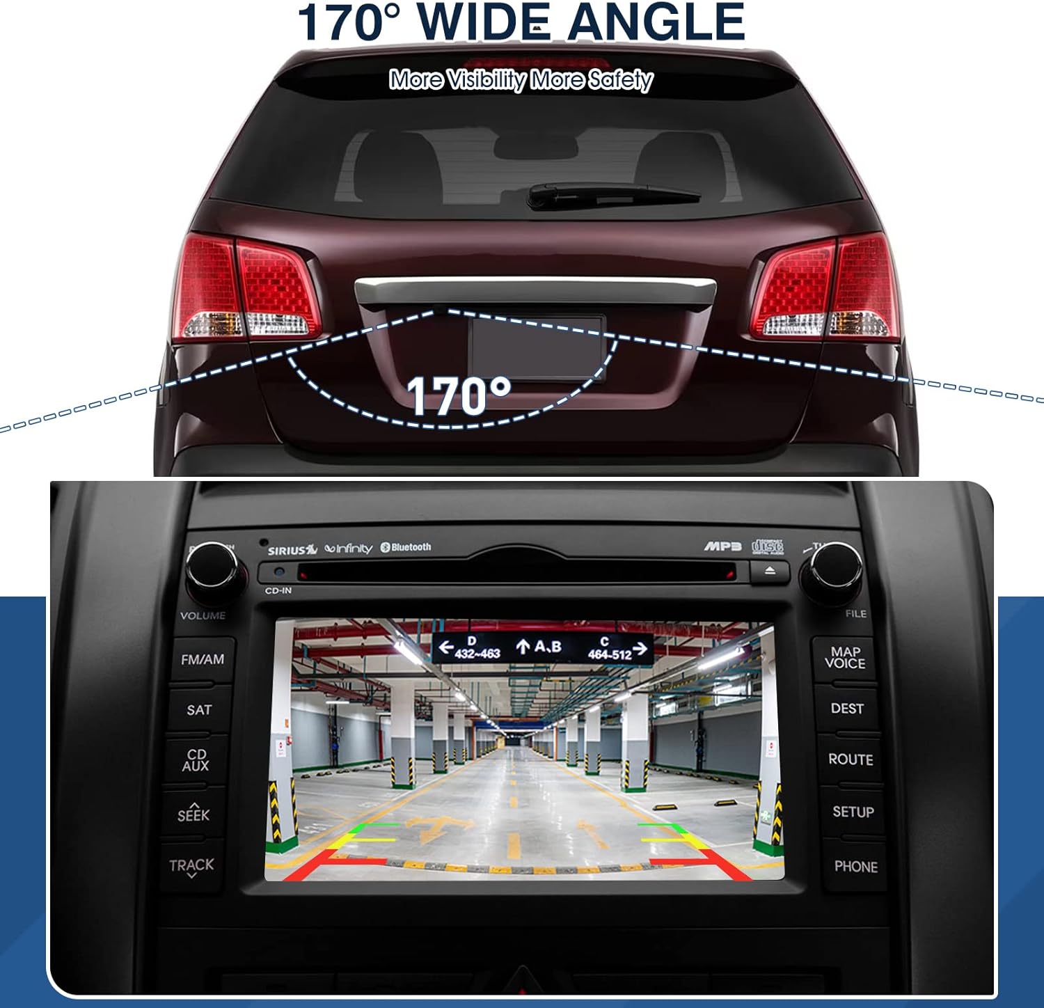 - [Clear Day and Night]: Backup Camera For Kia Sorento 2012 is made of high quality material and lens, support 170Β° wide vision and provides the driver with a clear and accurate color reproduction whenever in the day or night.