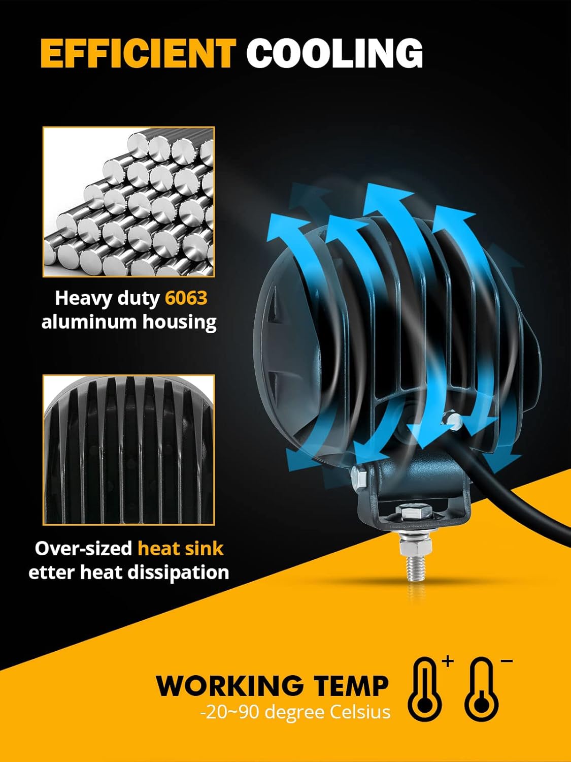 - 【BROADER THAN YOU THINK】Unique flood lens with optimal optical refractive surface design and light distribution theory for a 60° super flood beam pattern, providing unrivaled illumination for safe off-road driving.