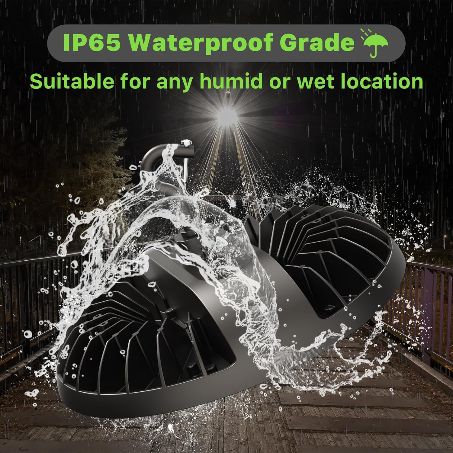 - Plug and Play: Equipped with J Hook and American Standard Plug, the high bay led shop lights are very easy to install. Save your time and effort at maximum. What’s more, safety rope can effectively avoid waggling or falling down.