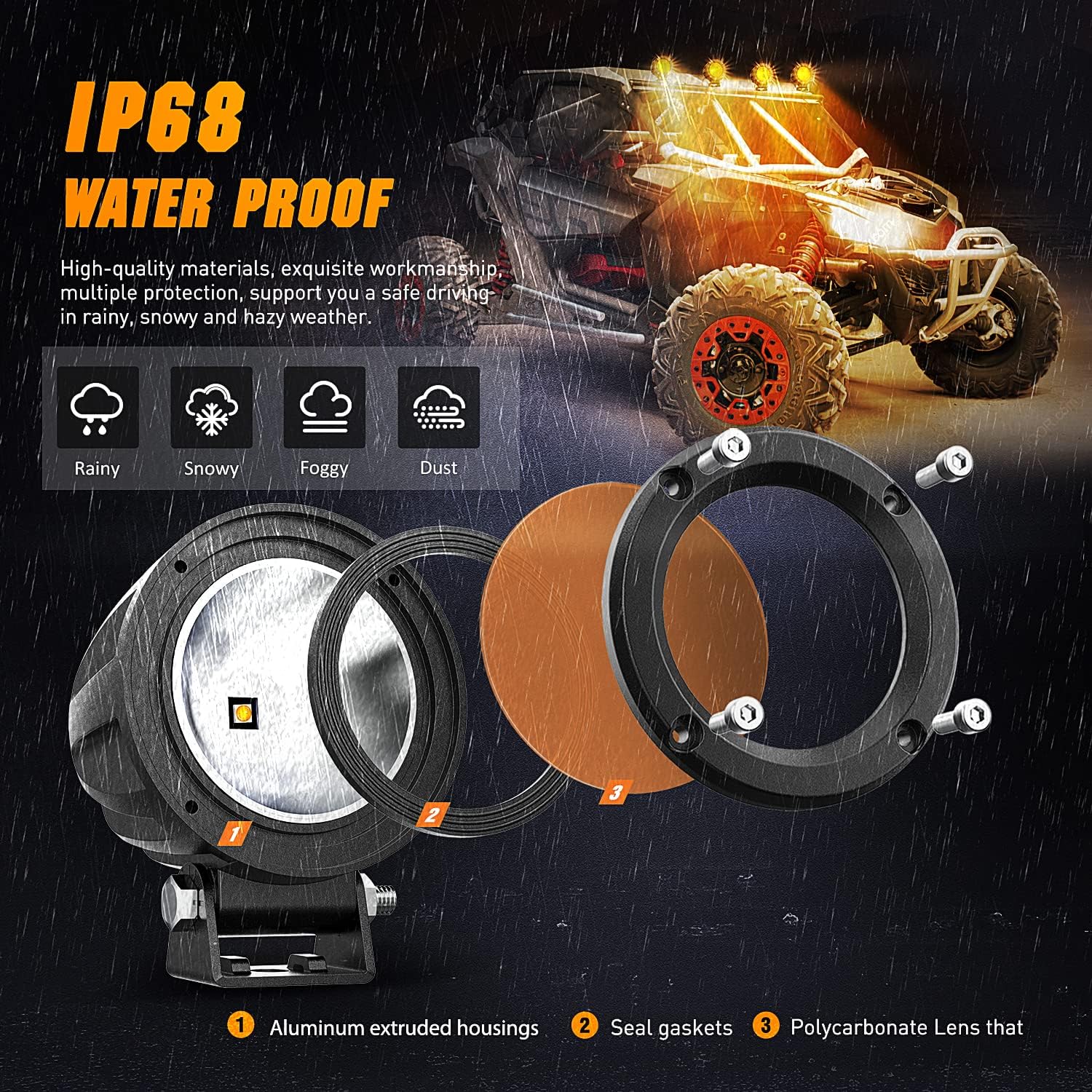- ăWide Applicationă: 3 inch pod lights, perfect for motorcycle auliary lights, round led driving lights for Offroad led headlights ditch lights for tractor, replacement for your factory fog lights of front or back bumper, fog light hole, bicycle dirt bike SUV ATV Truck Jeep Boat Tractor Forklift etc