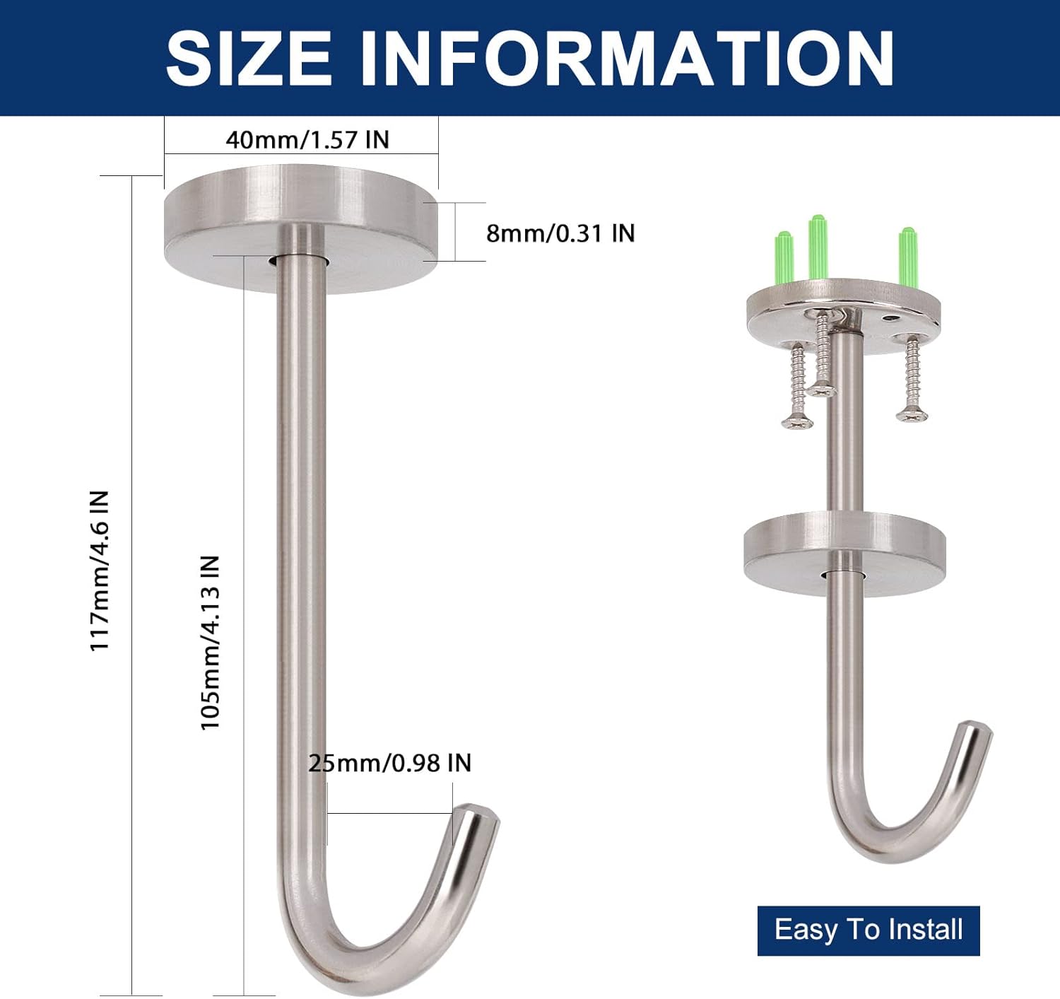 - SLEEK AND SIMPLE DESIGN: The classic shape and simple design of ceiling hook complement modern home decor beautifully. Its small size allows for efficient use of space while achieving a clean and organized look.
