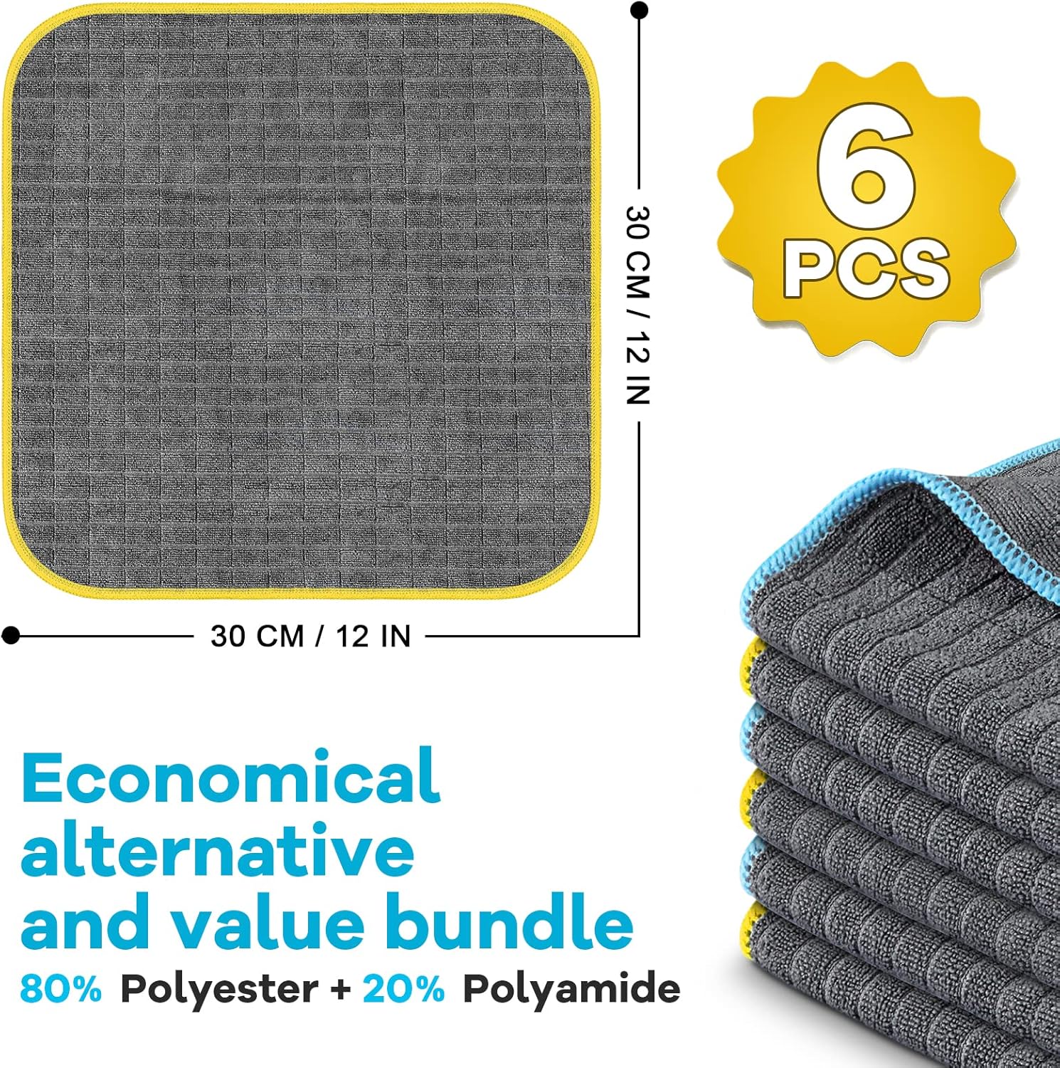 - Absorbent & Lint-Free: The microfiber material quickly soaks up water without leaving any lint or streaks, providing a spotless and shiny surface. The compact size of 12 inch x 12 inch makes it a handy cleaning cloth to have around.