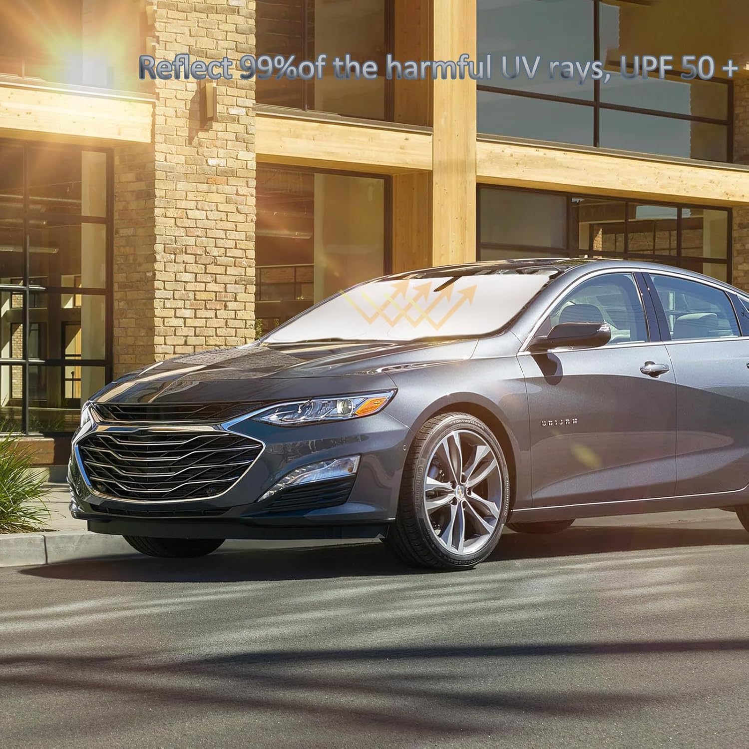 Sunshade for 2016-2024 2025 Chevrolet/Chevy Malibu Sun Shade Windshield Cover, Custom Fit Malibu Foldable Front Window Shield Sun Visor Protector 210T Reflective Blocks UV Rays Heat Car Accessories