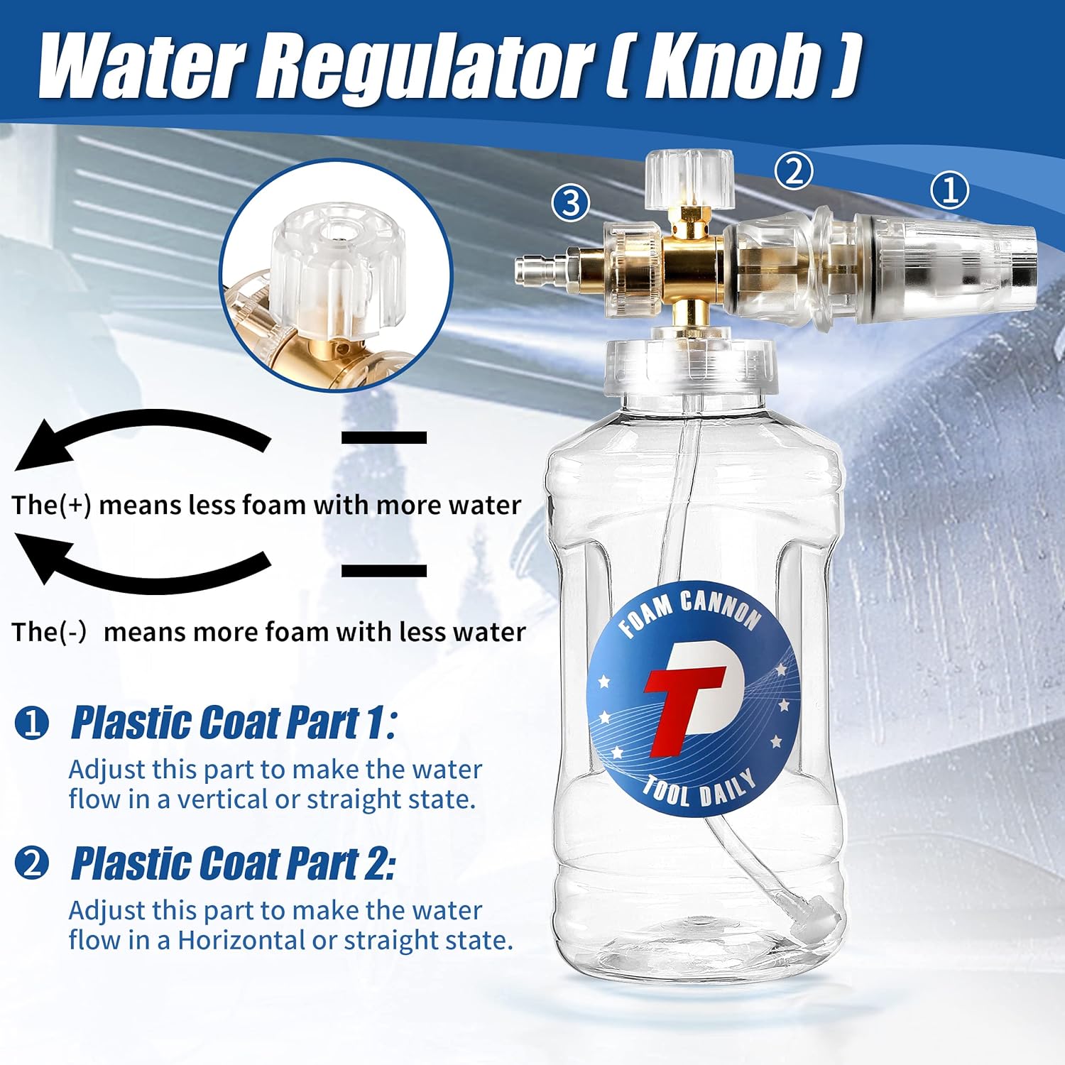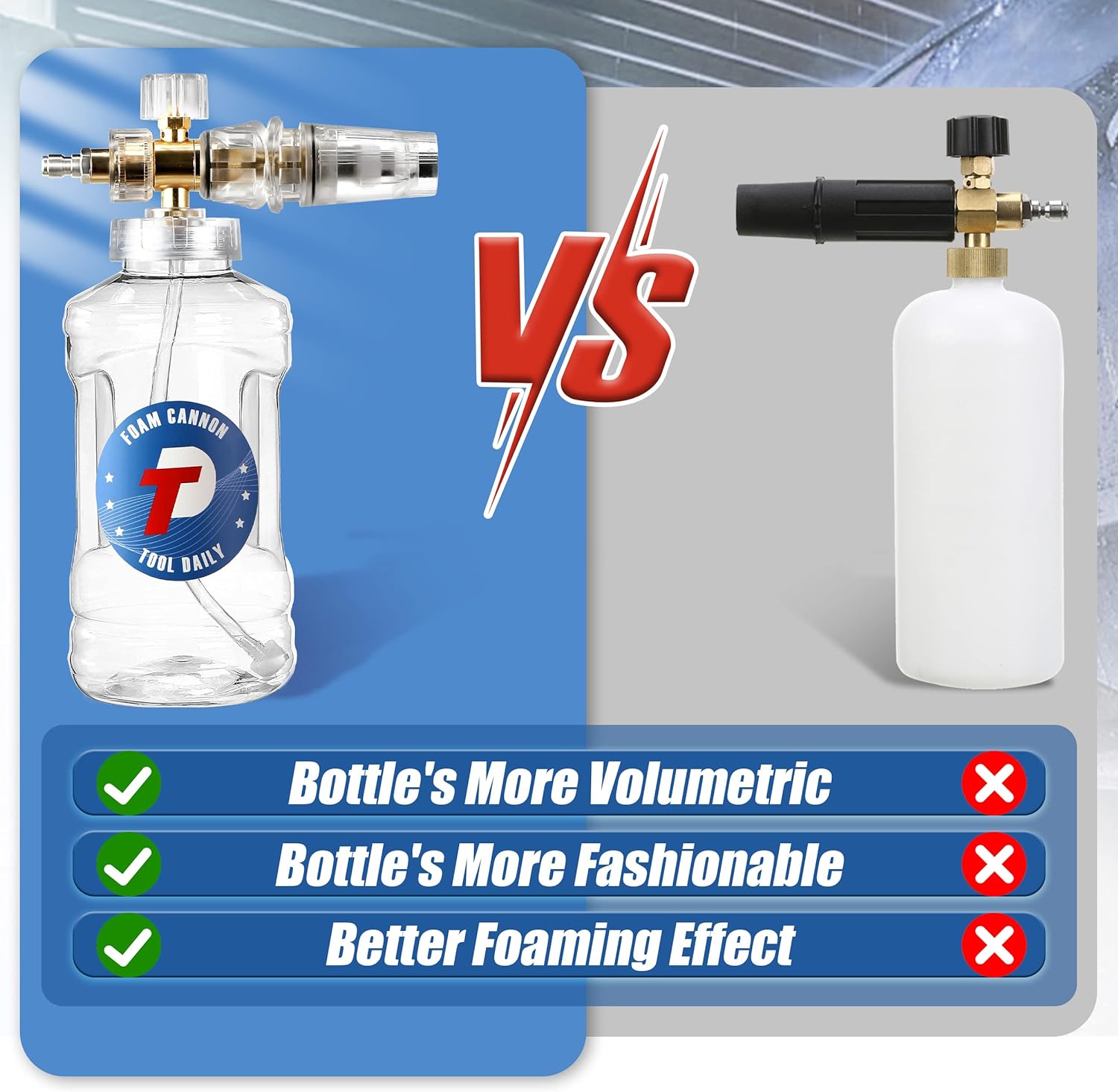 Tool Daily Pressure Washer Foam Cannon, Adjustable Snow Foam Lance with M22 and 1/4 Inch Quick Connect, Additional Orifice Nozzle 1.1mm, Car Wash Mitt, 1.5 Liter