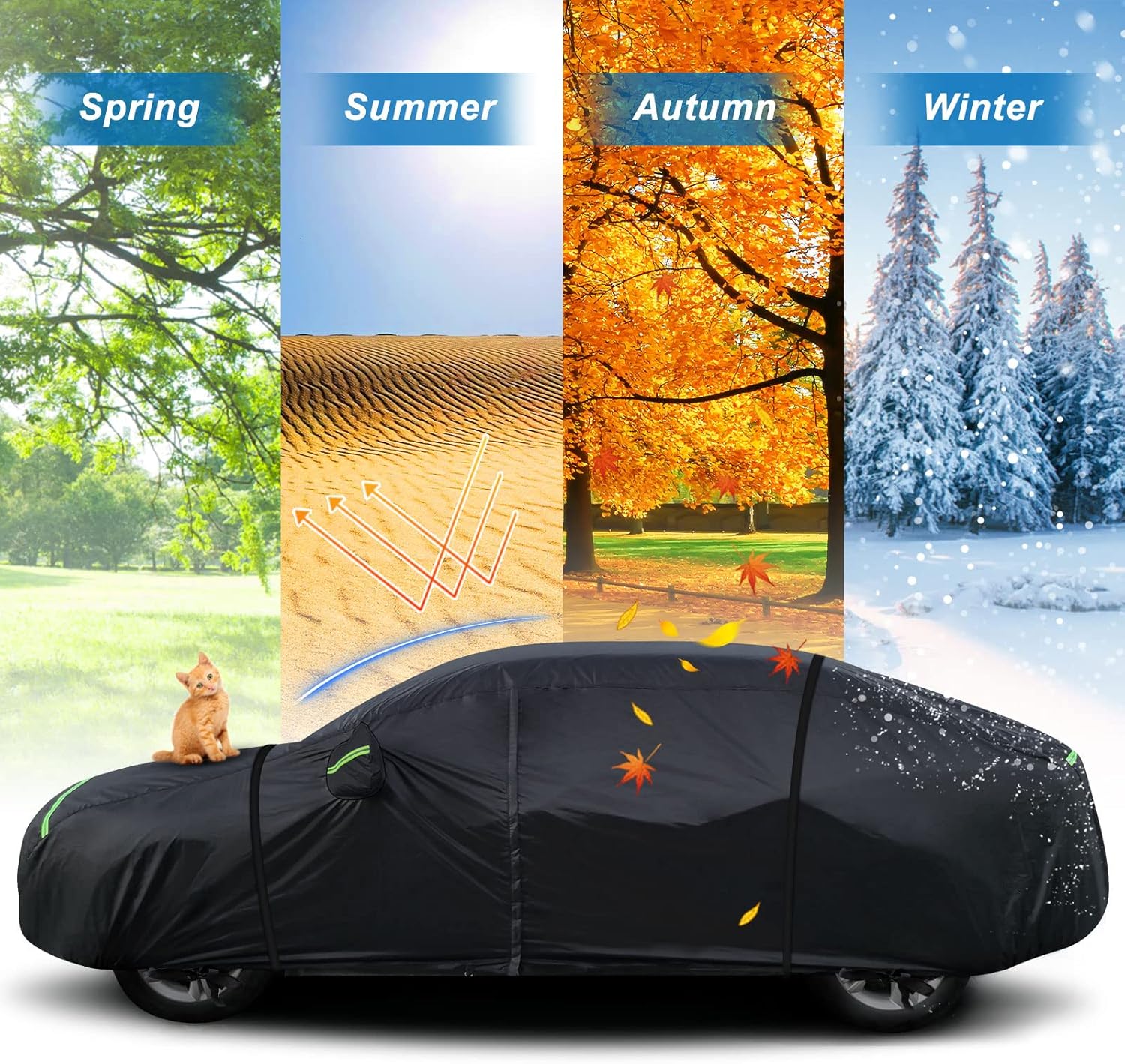 - ăAll-Weather ProtectionăTake High-density 210T polyester fabric and cotton as material to make sure its quality is tough, durable and safe under poor windy conditions. Prefect for all weathers and seasons. Preserve your Vehicle and Paint Against All Rain, Snow, Sun, Bird Droppings, Dust/Dirt - Approved for All Season Use (Spring, Summer, Fall, Winter).