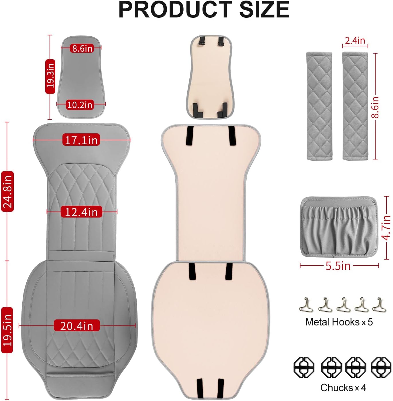 - Universal Size & Extra Accessories: Car seat covers are suitable for most cars. The car pocket organizer is compact and can be attached anywhere. It is perfect for storing small items such as phones, glasses, keys, change, and data cables. Seat belt covers, soft and comfortable, make your driving experience very comfortable, perfect for cars, trucks, backpacks, luggage shoulder straps, etc.