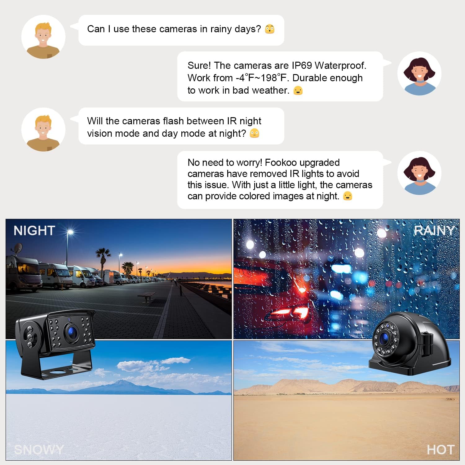Fookoo HD 1080P 10" Wired Backup Camera System, 10" Triple Split Screen Monitor W/Recording, IP69 Waterproof Side & Rear View Cameras, 4 Channel, Parking Lines, RV/Truck/Trailer/5th Wheel (DY103)