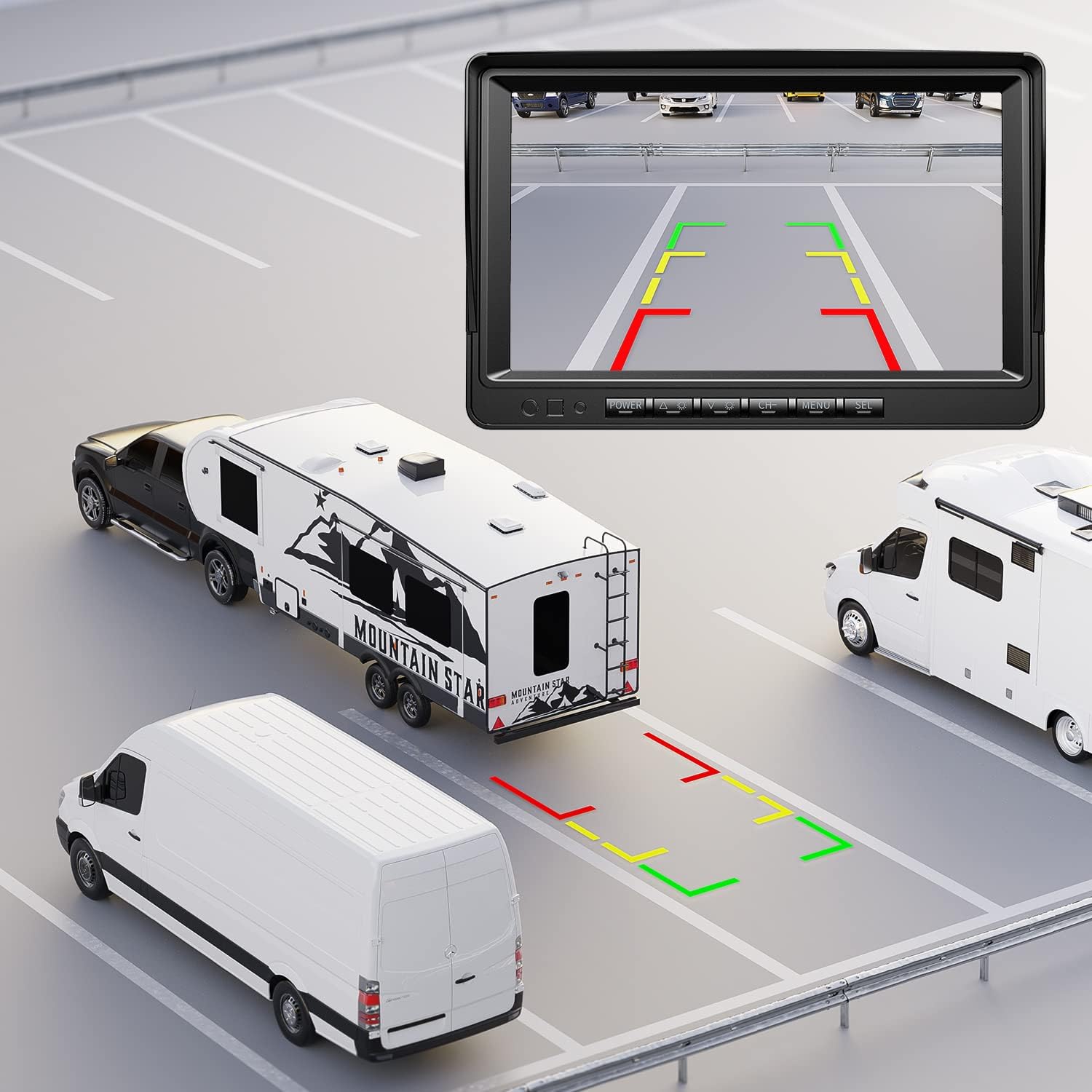 Fookoo HD 1080P 7" Wired Backup Camera System, 7-inch Quad Split Screen Monitor W/Recording, IP69 Waterproof Side View Rear View Cameras, Parking Lines for Truck/Trailer/RV/Tractor/ 5th Wheel (DY704)