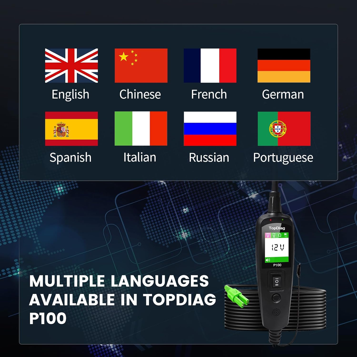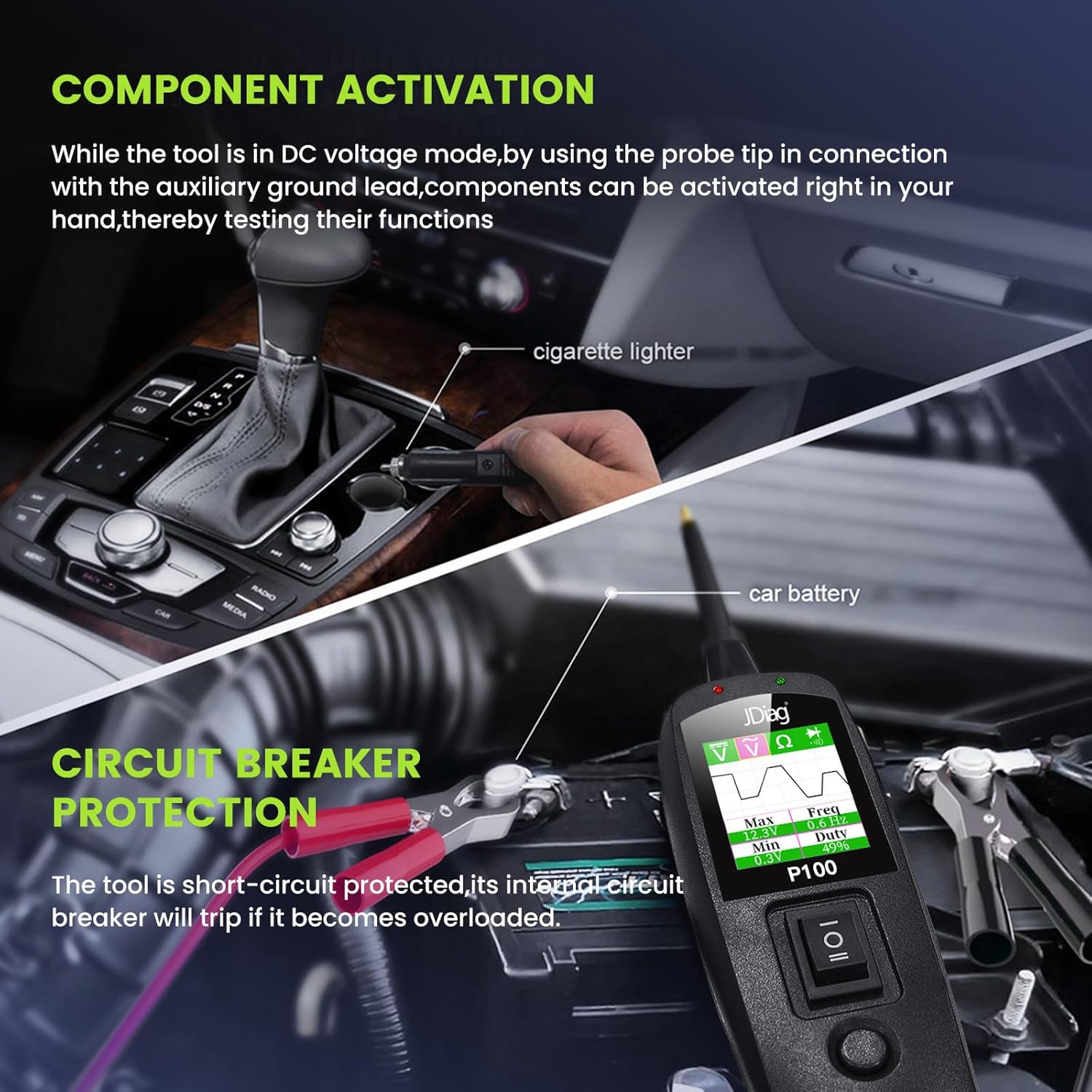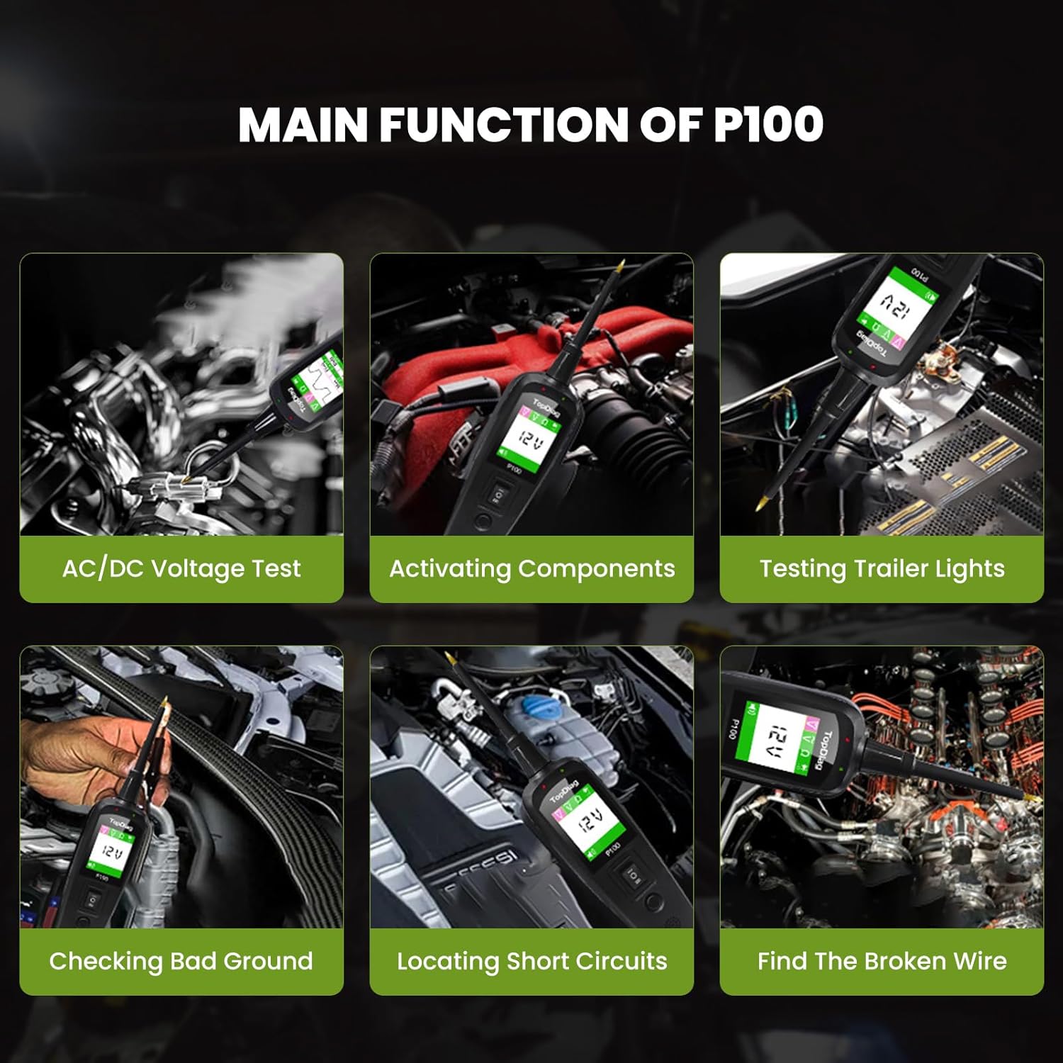- Wide Application: Our P100 power circuit probe test kit has a wide range of applications. It can be used as a car fuse tester, power tester, breaker finder, short finder, and automotive multimeter, among others. It also offers professional diagnostic capabilities and supports multiple languages, making it suitable for various vehicles and user requirements.