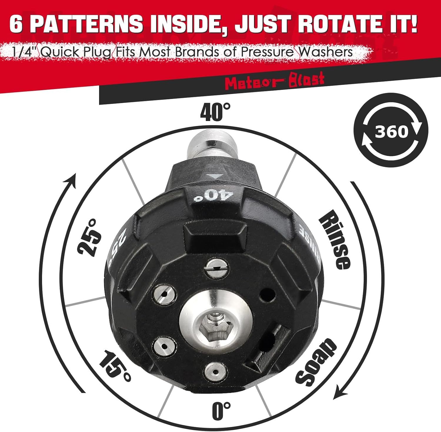 Meteor Blast Pressure Washer Nozzle, 6-in-1 Quick Change over and Adjustable, Power Washer Tips Replacement with 1/4 inch Quick Connector, MAX 4500PSI for Pressure Washer