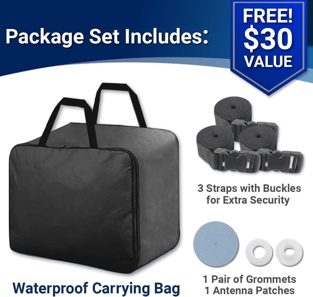 - 100% Warranty & Automotive Exterior Accessories: We offer a 100% warranty on your car cover, including car accessories like antenna patches, grommets, wind straps and a storage bag for compact storage. Experience the ultimate combination of style, protection and peace of mind with iCarCover's heavy duty car cover.