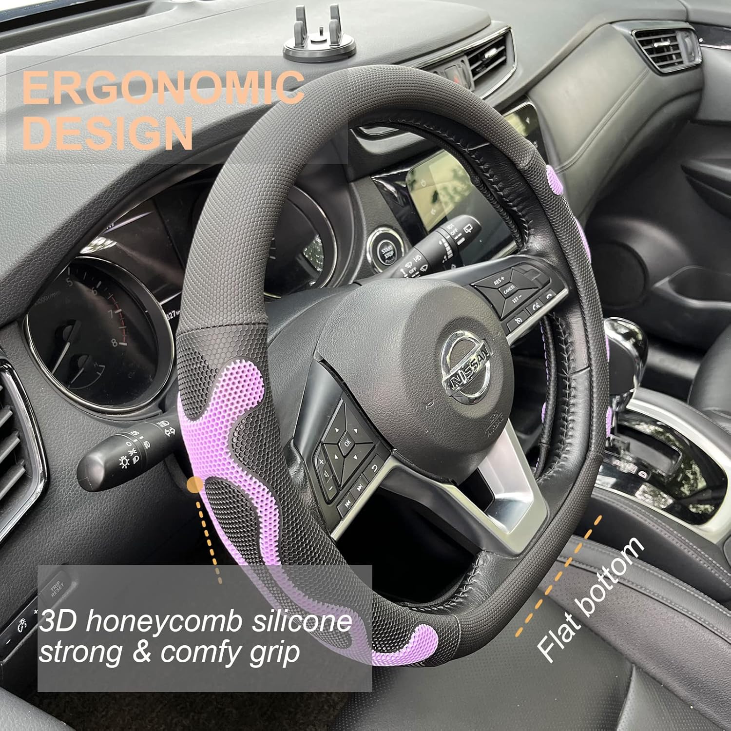PINCTROT D Shaped Comfy Grip Steering Wheel Cover, Anti-Slip Design, Flat Bottom 14.5-15 Inch(Silicone Purple)