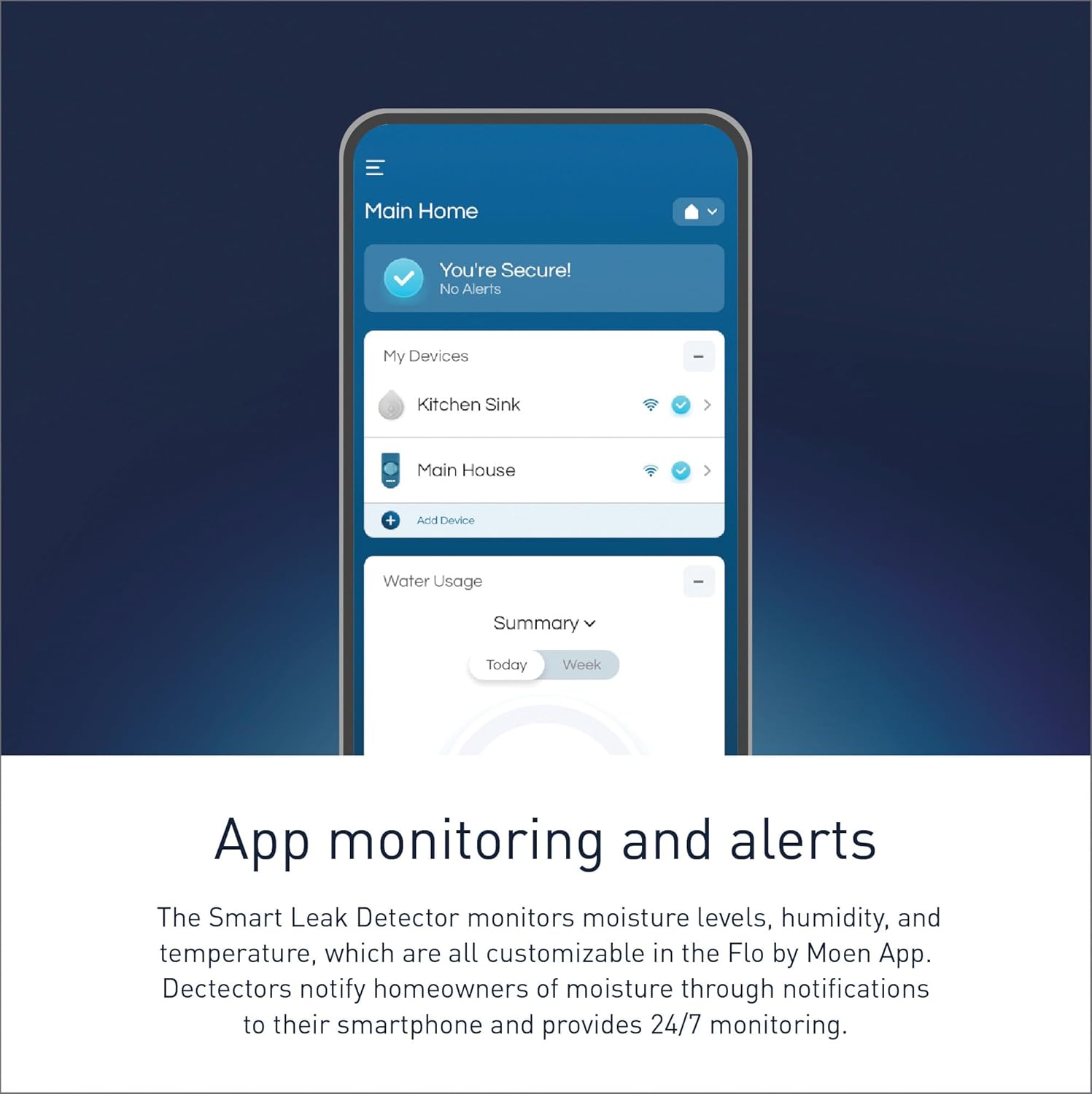 - 24/7 PROTECTION: Smart technology detects leaks to help reduce the risk of water damage by providing 24/7 monitoring