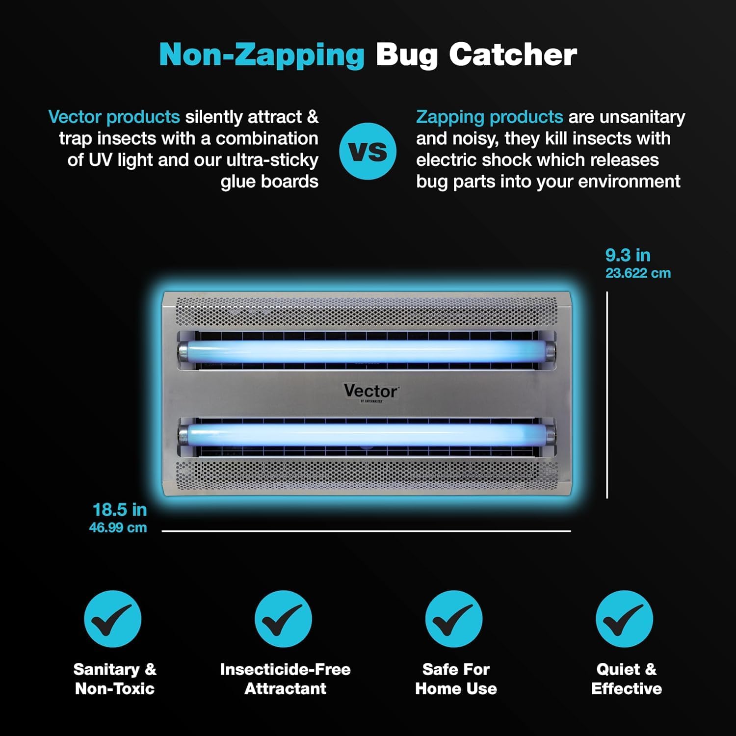 - NON-TOXIC AND SAFE: The electric bug catcher lamp is easy to use and designed for flying insect control without the use of toxic chemicals. Unlike most of the competitive insect light traps, our units have covers over the catch area so that the trapped flies are out of view. The flying insect trap is easy to use, clean, and silent, with no zapping noise.