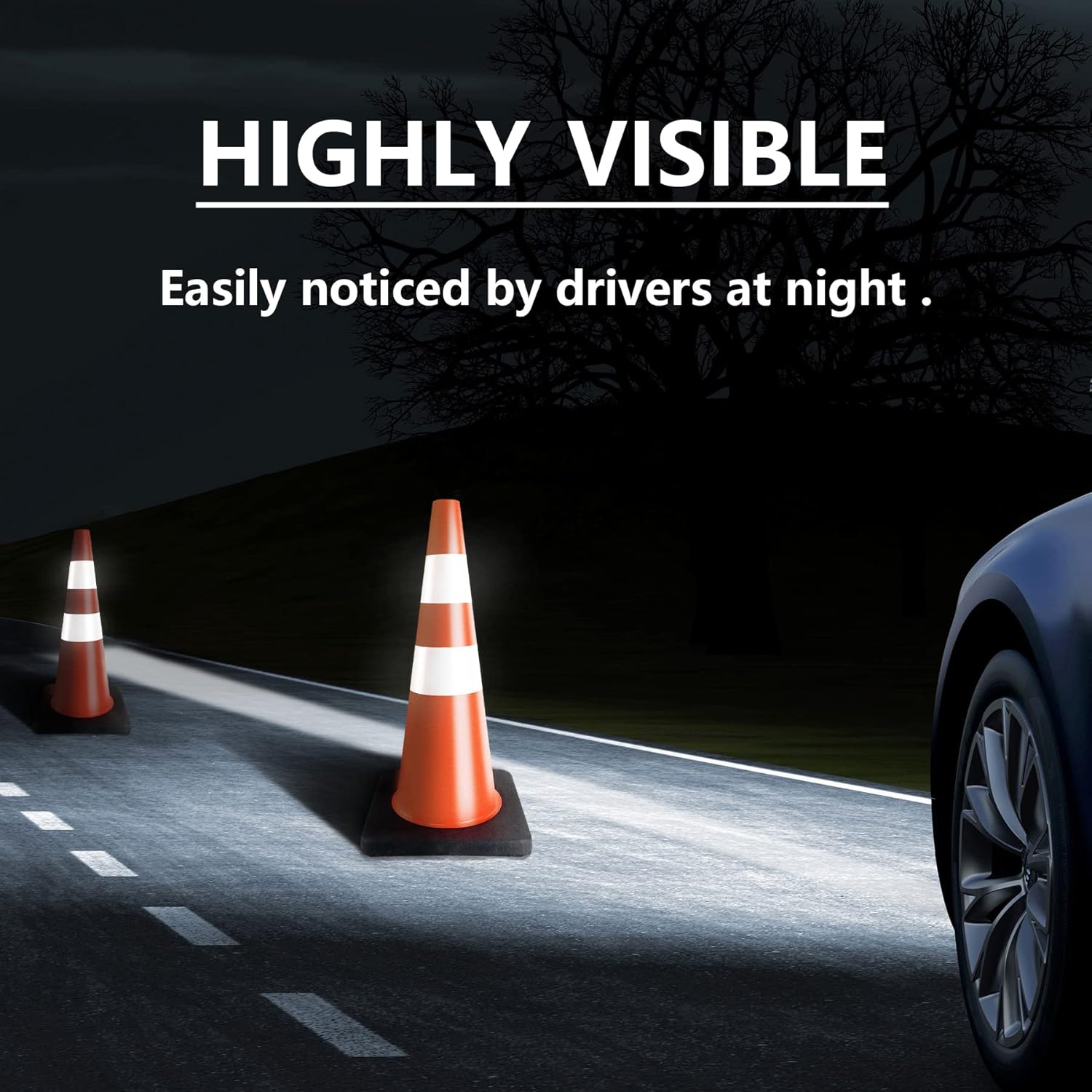- EYE-CATCHING VISIBILIT: Our traffic cone features a combination of fluorescent orange and 2 silver reflective strips. This makes them very noticeable day or night in sunny, fog, rain, snow, or other harsh conditions