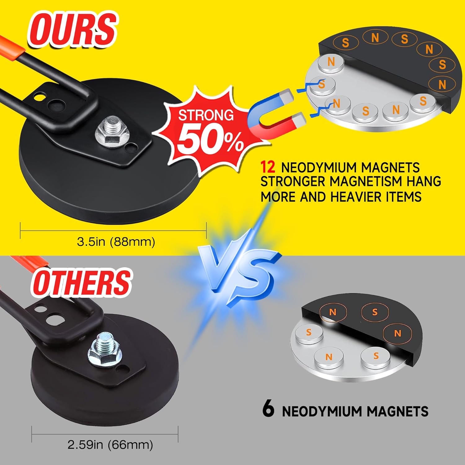 - 🧲[2PCS Magnetic Hooks For Hanging] Large strong magnetic hook present an efficient solution for optimizing vertical storage space within your garage organization system. These multifunctional extra magnet storage hooks are suitable for both indoor and outdoor settings, including garages, gardens, kitchen, warehouse, cruise cabin, utility rooms and indoor/outdoor.