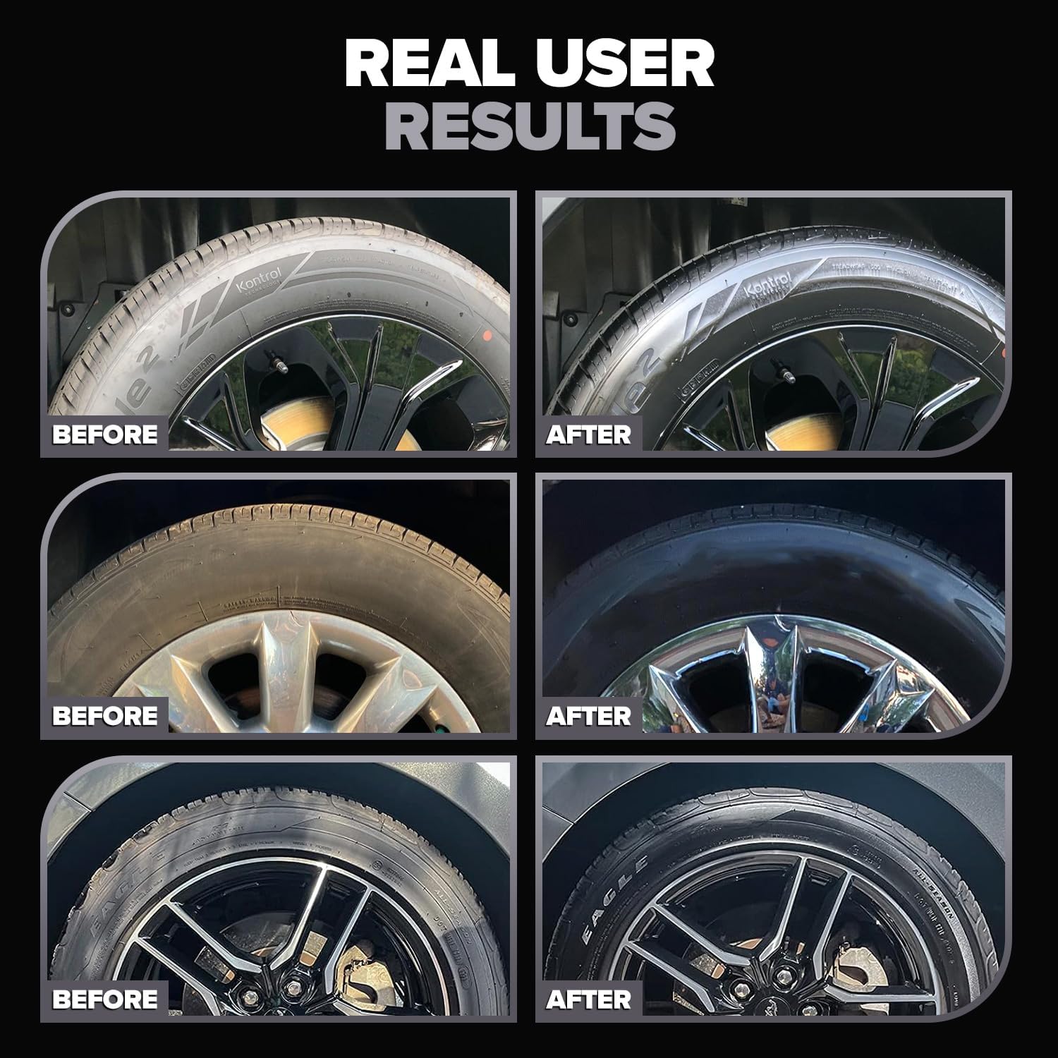 - REAL TIRE PROTECTION - Many people use car detailing kits, wheel cleaners, waxes, polishes and all other car accessories but never consider that tires need protection too! Tires are expensive, and you can protect them while making them look good!