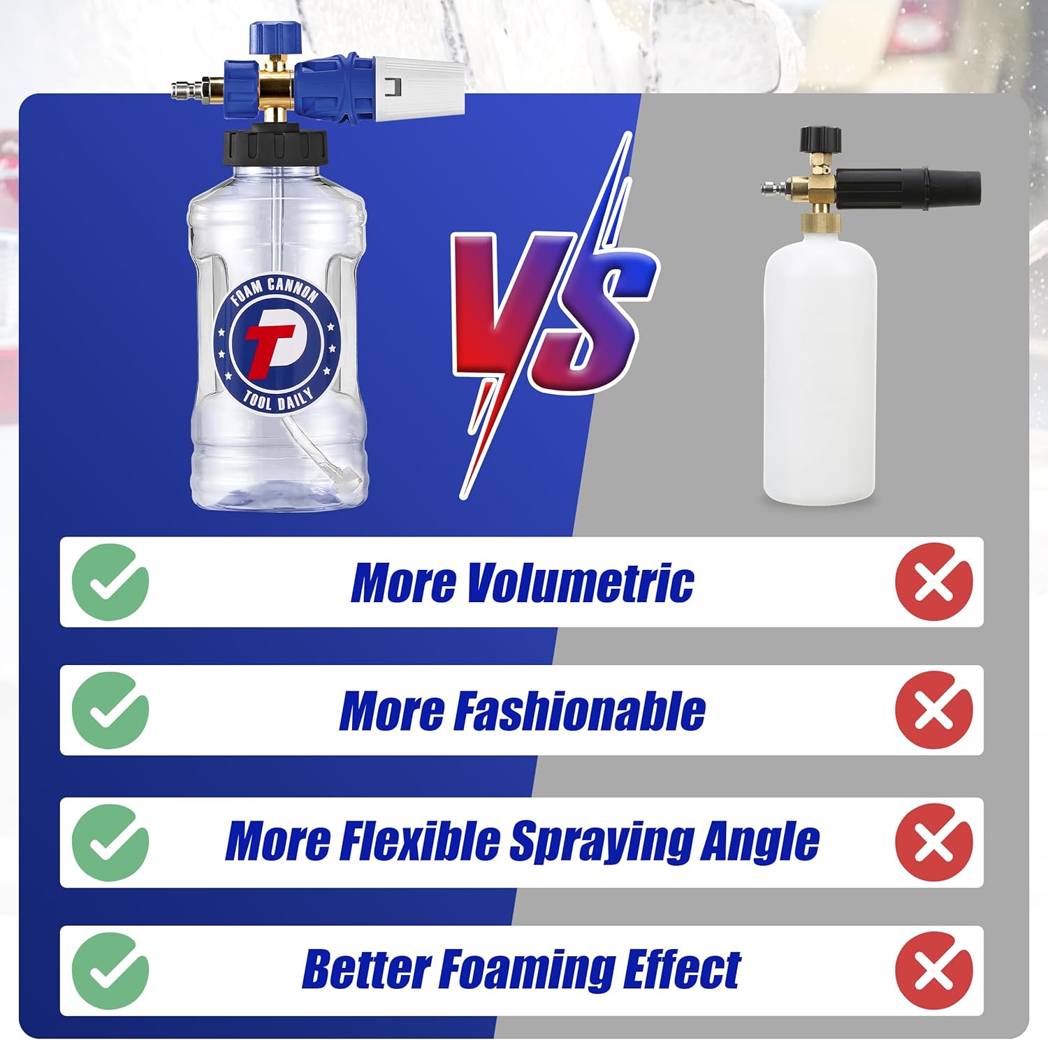 - VERSATILE USES: Our car foam cannon is a versatile cleaning tool that can be used for a variety of applications. The wide mouth foam cannon is ideal for cleaning motorcycles and cars, as well as roofs, driveways, siding, floors, windows, and more. It's also great for detailing trucks or SUVs. Pair the foam cannon with our car wash mitt for a thorough and effective clean.
