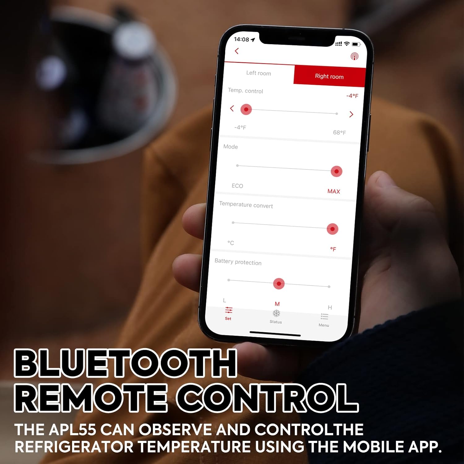 - Advanced Technology - APL55 12v refrigerator can be temperature controlled via mobile app. The refrigerator alarm ring when the lid is left open or an error code occurs.