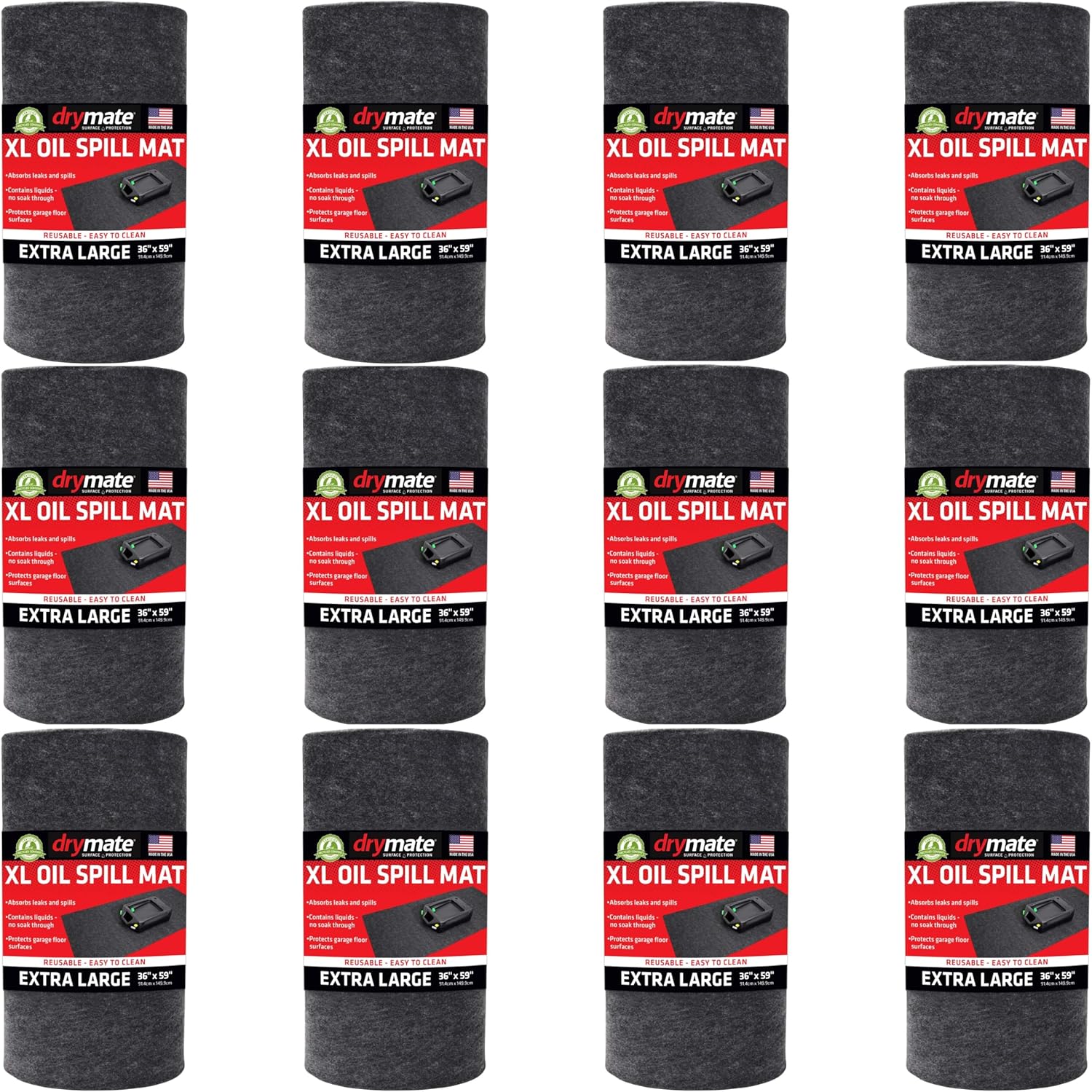 Drymate XL Oil Spill Mat (36" x 59") (12-Pack), Premium Absorbent Oil Pad, Reusable, Washable, Durable, Waterproof Backing Contains Liquids, Protects Garage Floor Surface (USA Made)