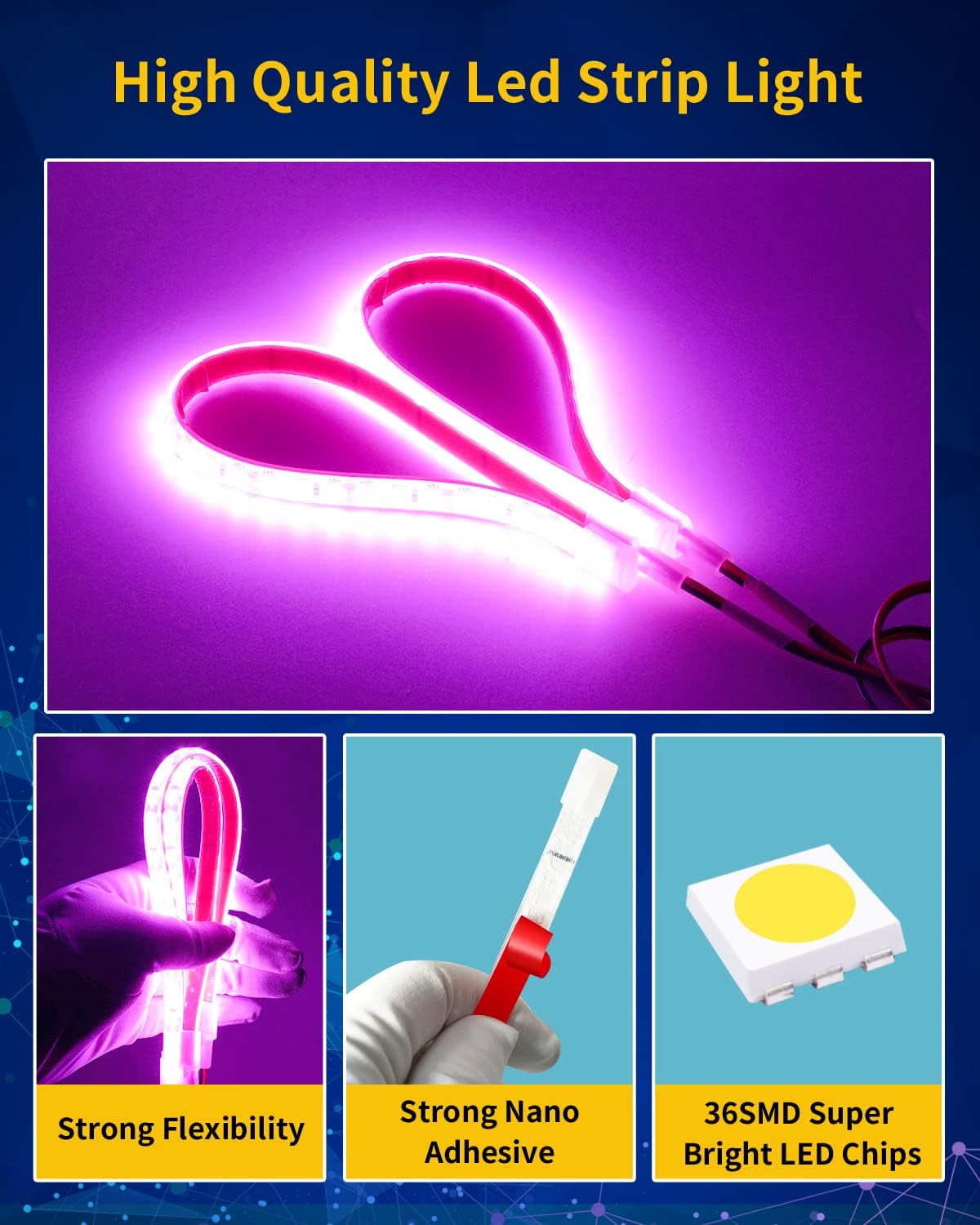 - Special Feature : IP68 Waterproof can work underwater, Cuttable ,Flexible, Super bright, With Strong Nano Tape, With 1 Meter (40 inch) Wire each strip light,No dark Spot IP68 Waterproof can work underwater, Cuttable ,Flexible, Super bright, With Strong Nano Tape, With 1 Meter (40 inch) Wire each strip light,No dark Spot