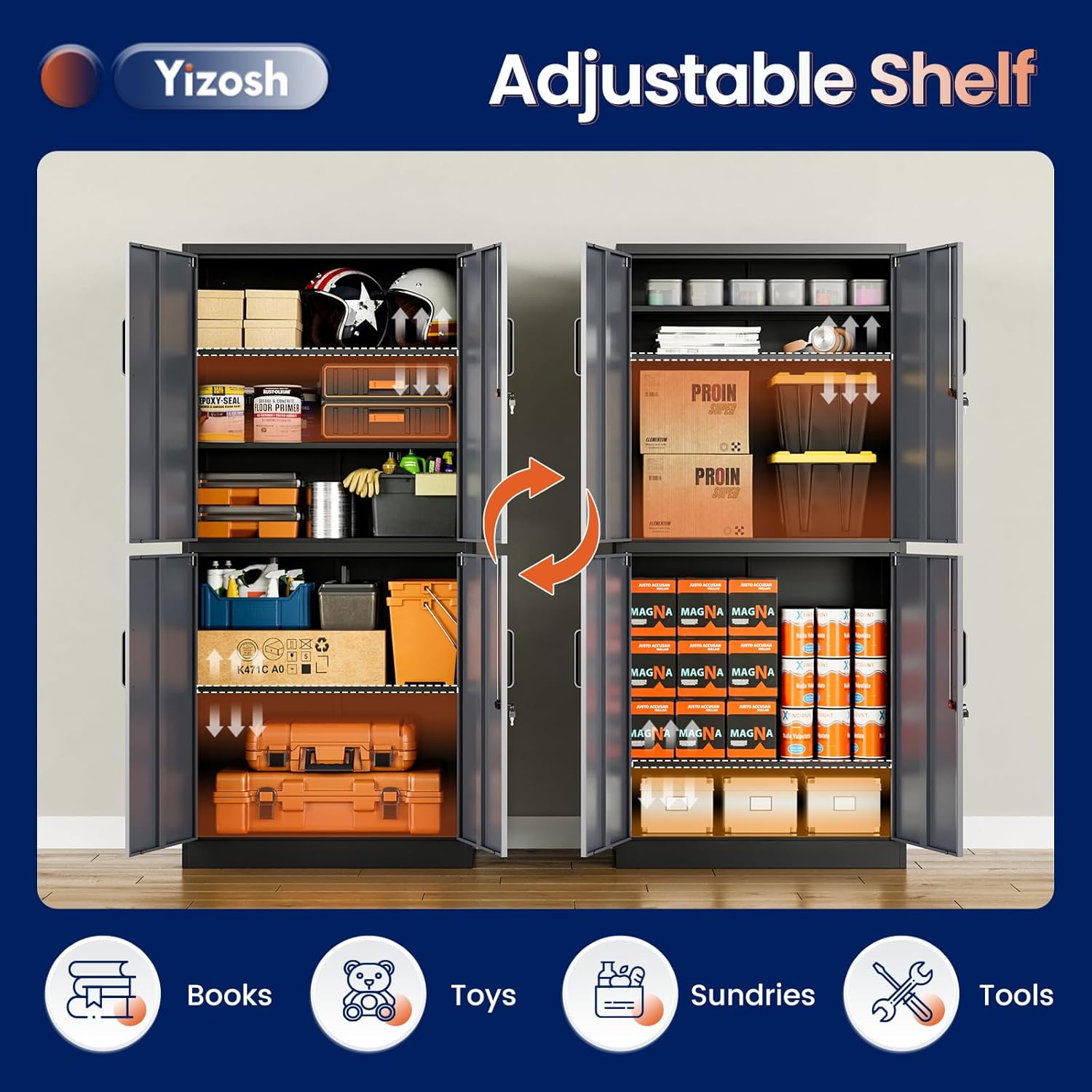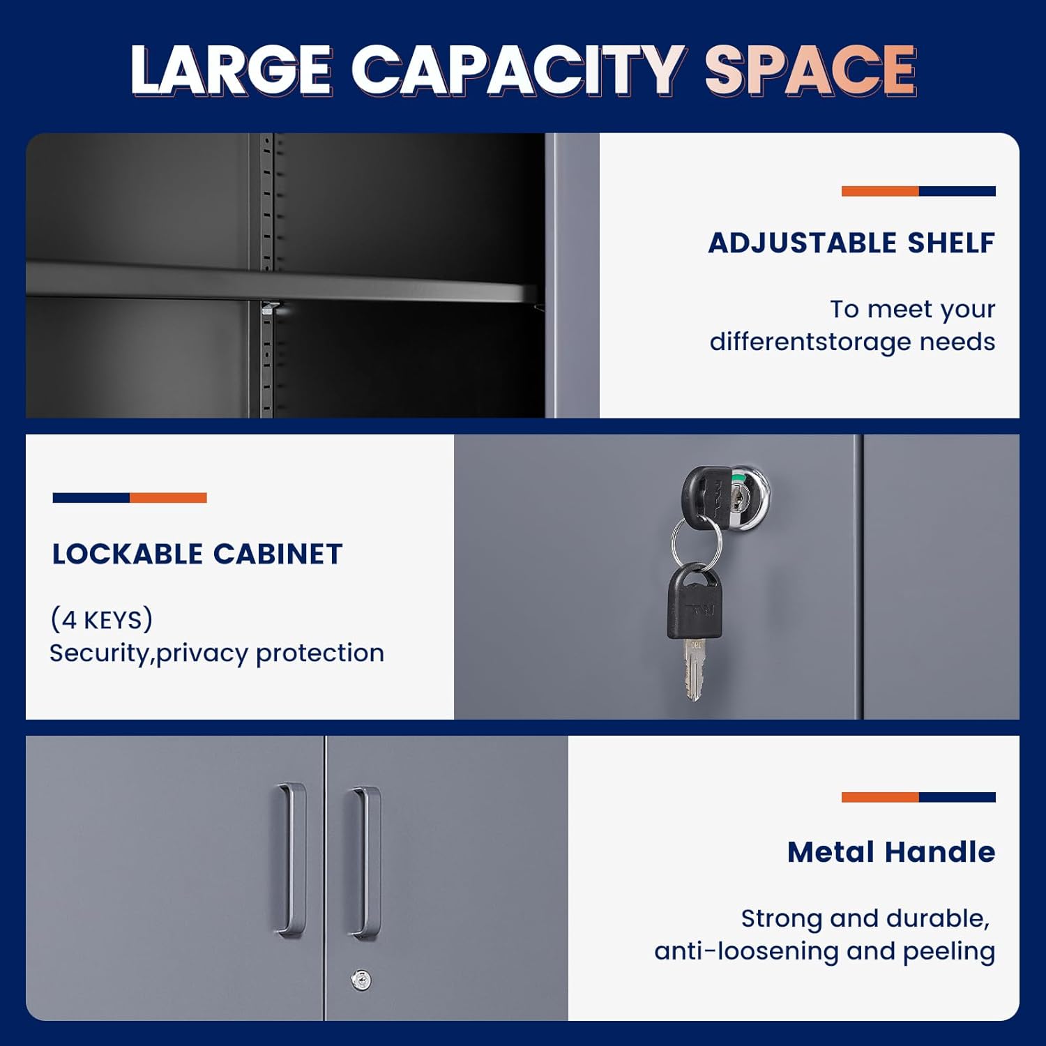 - ăMultiple usesă:Simple and large capacity design makes this lockable metal cabinet to be widely used in office, garages, basements, shop, home, kitchen, warehouse, school classroom or anywhere secure storage space is required