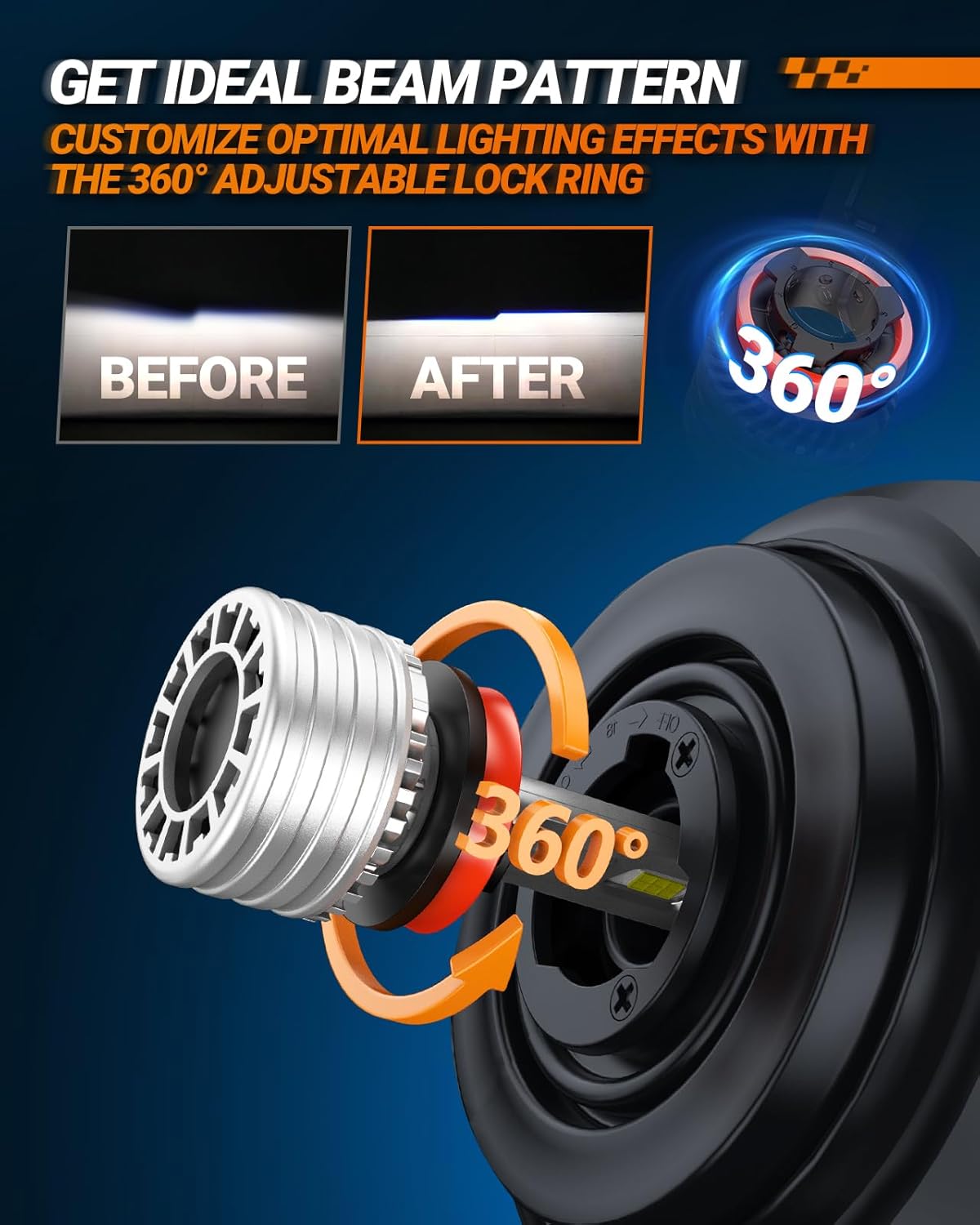 - 1:1 Size: With 360Β° adjustable lock ring, H11 bulbs ensure focus light ensures higher on the passenger side to illuminate road signs and lower on the driver's side to prevent blinding other drivers, making night driving safety