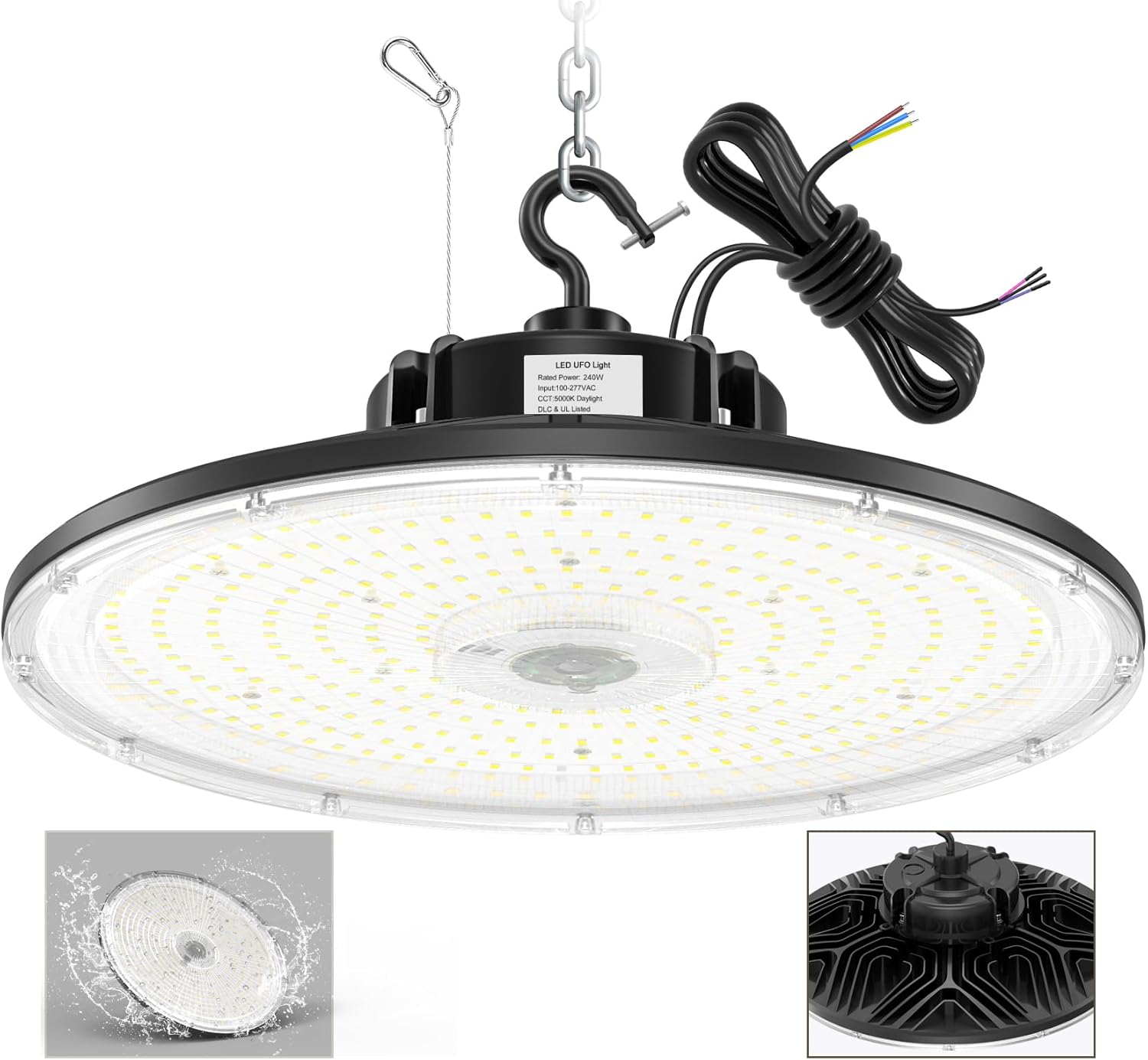 - 【Safety】This high bay LED shop light come with 4.9FT power cable (UL Certified) without US Plug,can be worked under power supply of AC100-277V. Whole light has ETL and DLC Listed