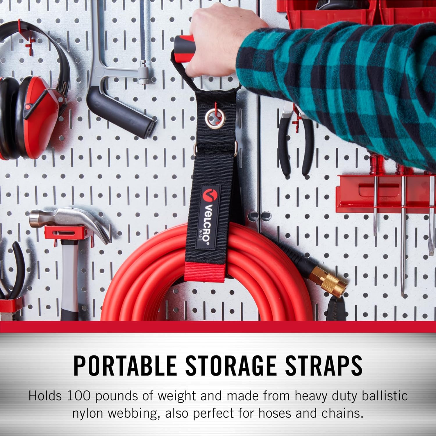 VELCRO Brand VEL-30897-USA Heavy Duty Carry Strap with Handle Holds 100 Pounds | Garden Hose Storage, Transport or Hang Extension Cords, Ropes or Chains |, Large, Wraps 7.5 Inch Diameter, Black