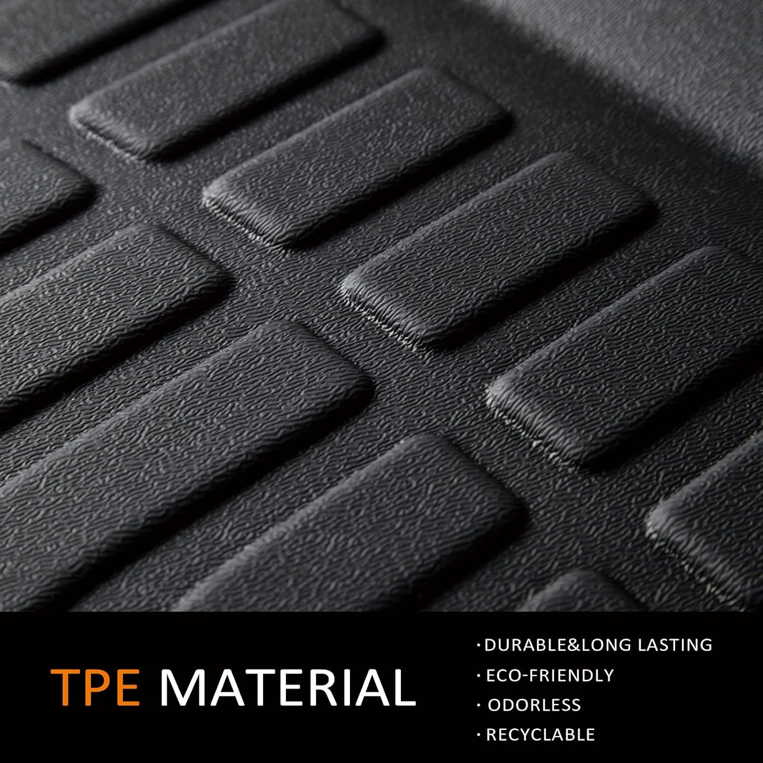 - ăTPE MaterialăBinmotor car floor mats are made of high quality Thermoplastic Elastomer(TPE) materials, which makes car floor mats both soft and durable. This kind of high quality materials even in hot weather does not melt