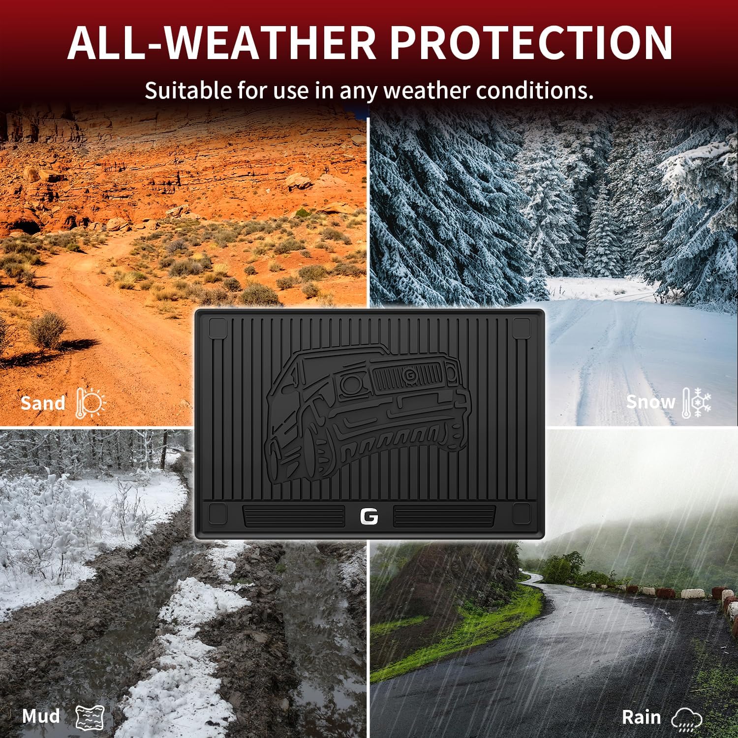 - Advantage & All Weather Protection : Specially designed for Mercedes Benz G-Class 2019-2026 550 / 580 / 63 AMG. Shields your floor from dirt, mud, salt, rain, snow, sand and even hot summer temperatures. Especially suitable for work commuting, outdoor camping, travel and vacation.