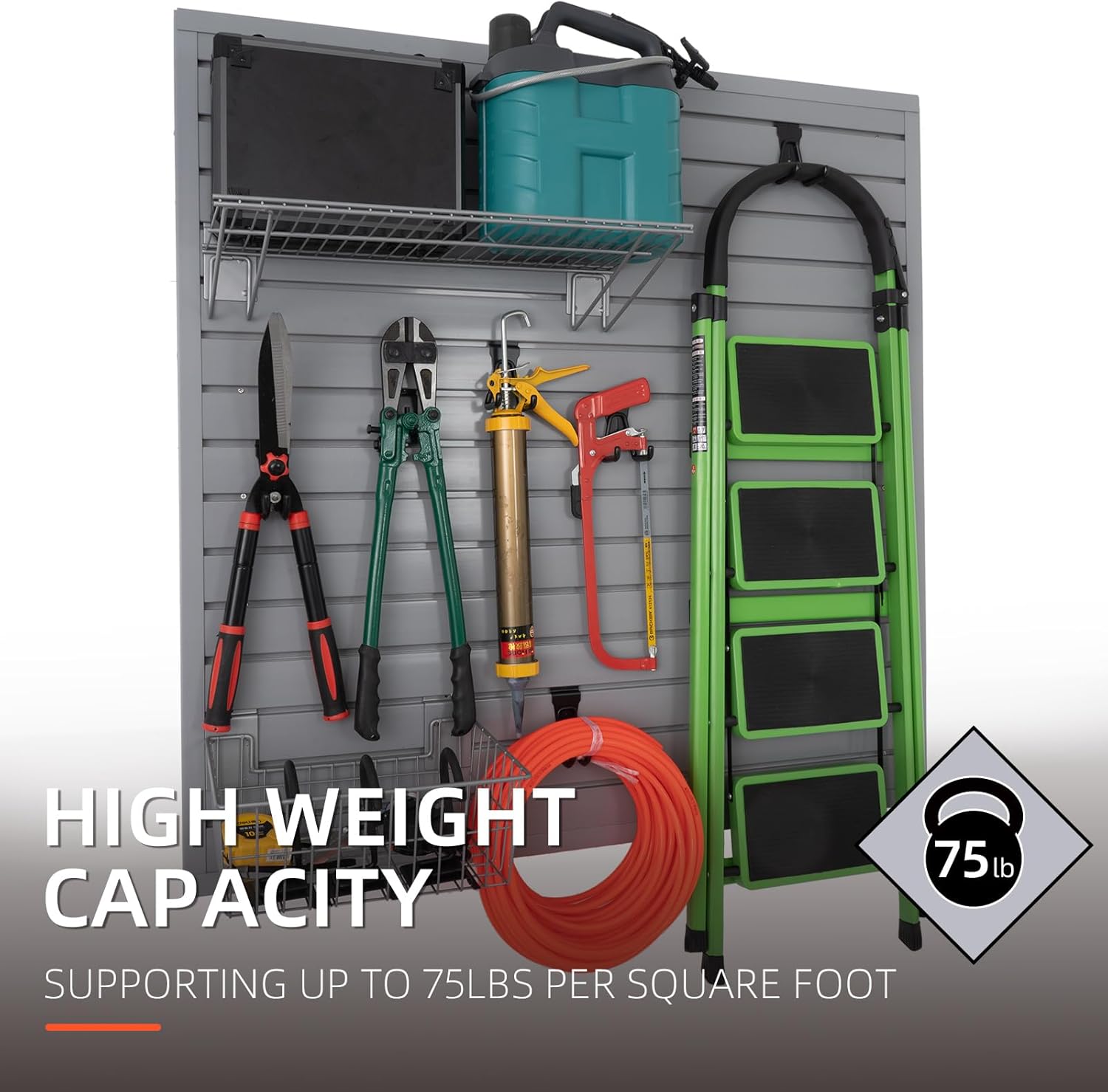 - MAKE FULL USE OF YOUR SPACE: Unleash the true potential of your garage wall organizer for tools with the garage slat wall panel. By making smart use of vertical wall space, you can revolutionize your garage into a seamlessly organized and efficient area. Bid farewell to a messy garage and welcome a meticulously optimized space that maximizes every inch available. Enjoy effortless access to your tools, equipment, and accessories, all while crafting a visually captivating environment.