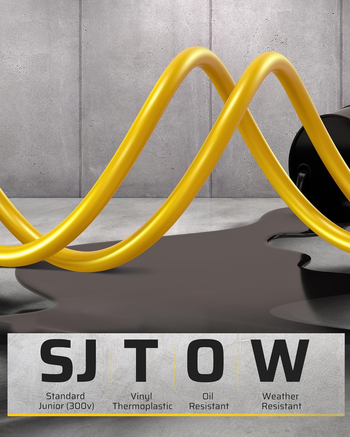 - [14 Gauge SJTOW Cord] The SJTOW electric cord reel, designed with a 14/3C gauge, durable and No breaking after repeated bending; weather-resistant and flexible in low temperature; resistant to UV rays, water, oil, and acid for use in typical garage; NOTE: Please use indoors or in a dry place