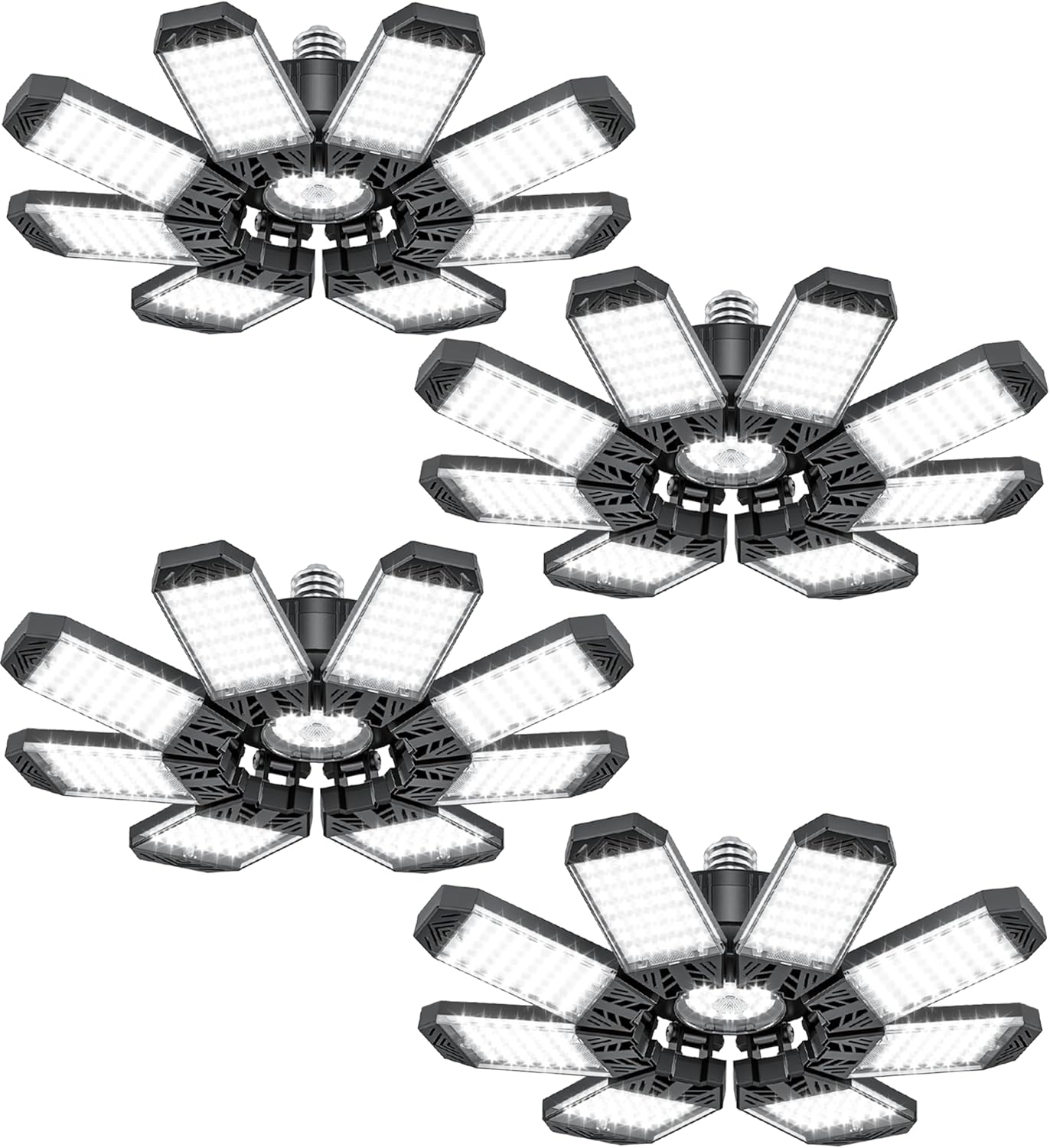 ISKYDRAW LED Garage Lights, 4 Pack Garage Lighting 260W 26000LM Bright Shop Ceiling Lights Screw Into E26 E27 Bulb Socket, Deformable 8+1 Panels 6500K Basement Bay Lighting for Workshop Barn Porch
